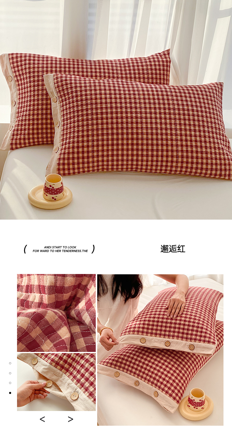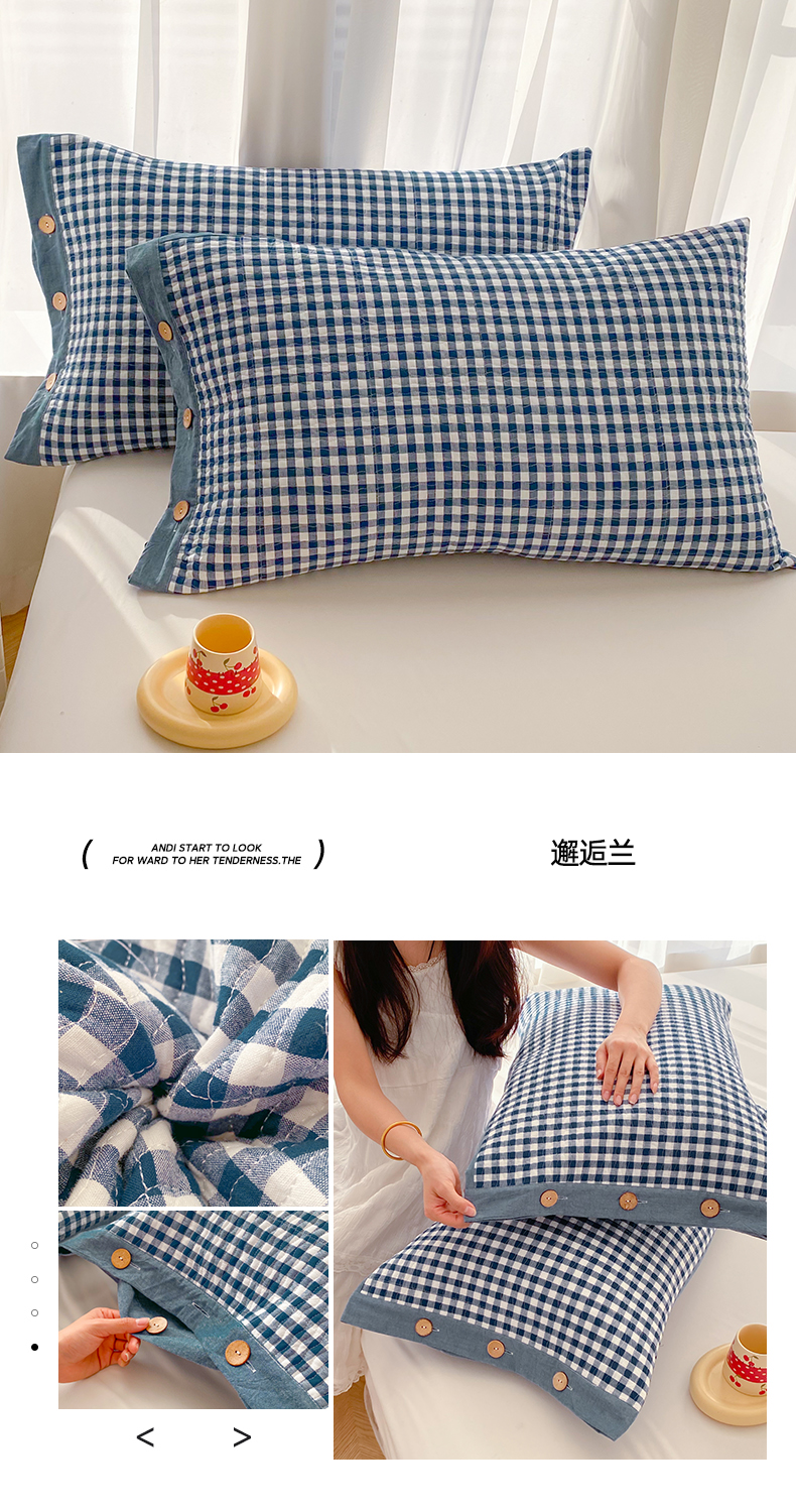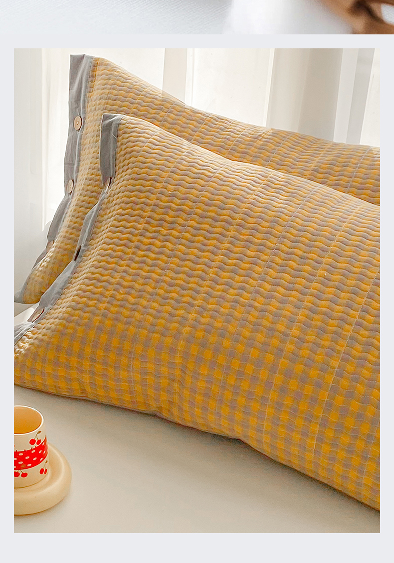 (总)美宜家 2026新款全棉枕头套高密色织水洗加棉绗缝高端纯色枕套,极简山灰,极简米其,极简兰灰,极简仔兰