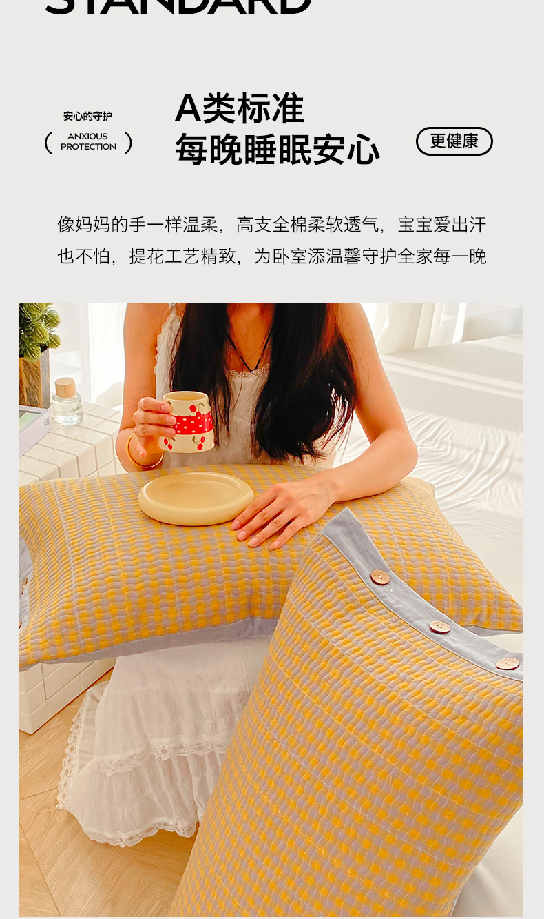 商品名称:(总)美宜家 2026新款全棉水洗高密色织夹棉纺缝枕套高端全棉枕芯保护套