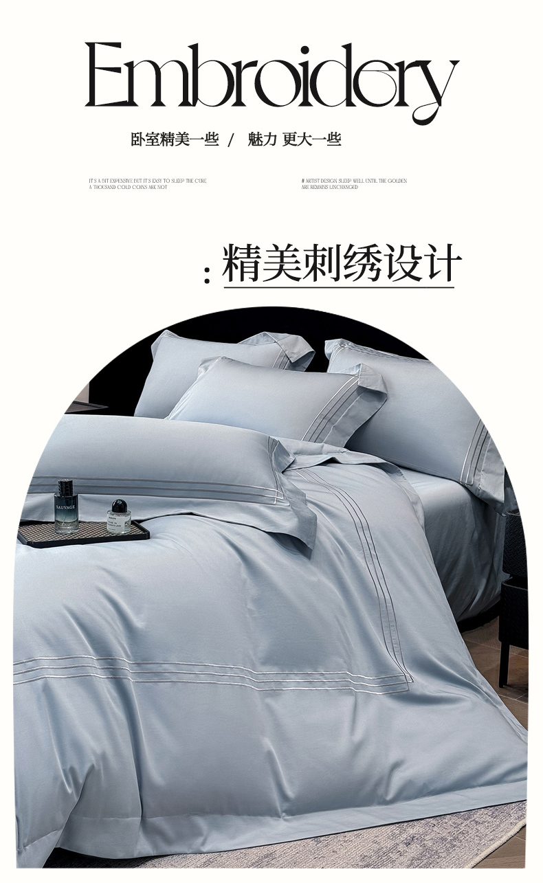 (总)星蕴家纺 2026新款双股长绒棉全棉纯棉刺绣四件套-柏林系列,柏林 贵族白,柏林 星空灰,柏林 云山蓝,柏林 香槟金,柏林 可可粉