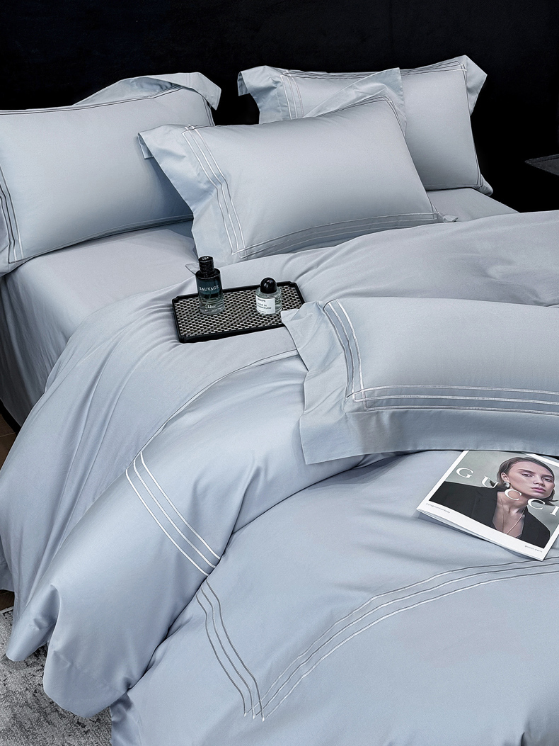 星蕴家纺 2026新款100s贡缎长绒棉四件套-简爱 简爱-云山蓝