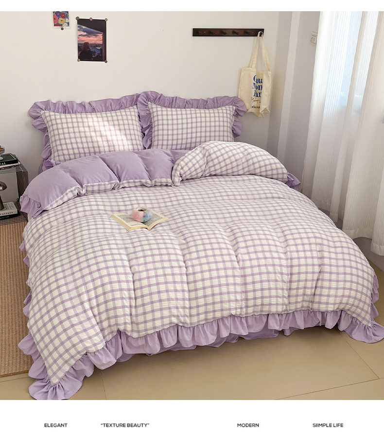 乐卧家居 2026新款韩国INS风简约时尚绗缝荷叶边夏被 紫色,紫色