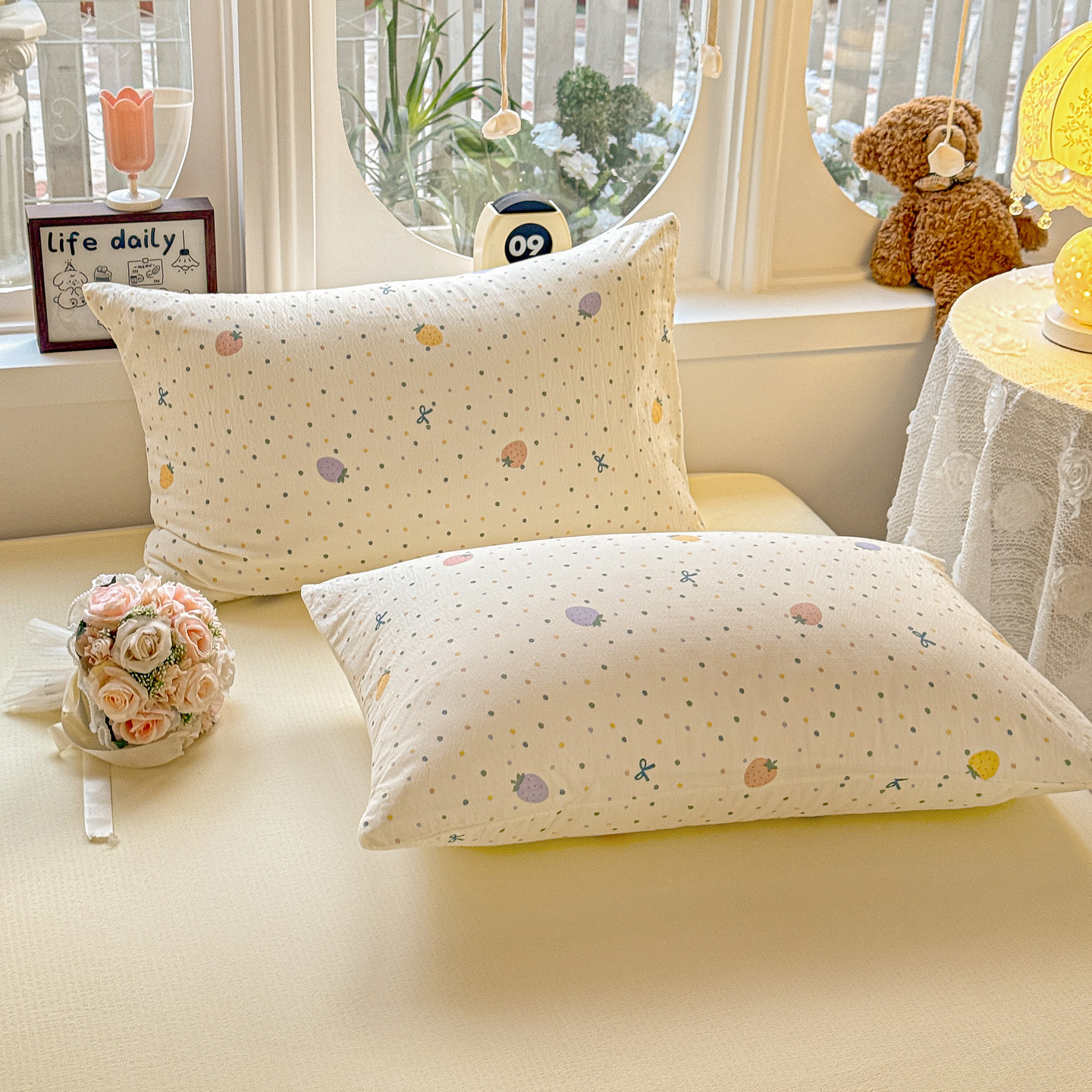(总)朵朵家纺 2026新款云感木棉皱皱纱双层纱印花单枕套枕套单件单品枕套,豹纹KT,星星人,安琪拉,北半球,波点草莓,春野集,蛋糕喵,繁星春水,好朋友,来财梦,兰溪,萌宠派对,芊芊花语,森林乐园,森林密语,甜茶,小新e族,小樱桃