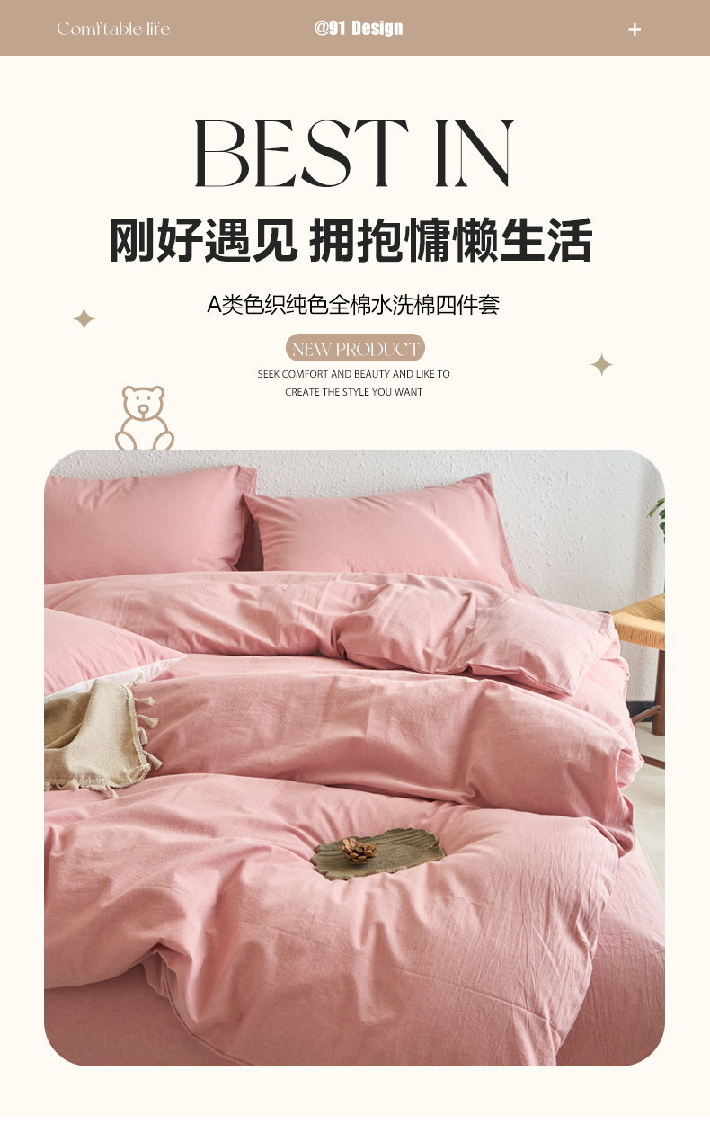 当前位置: 91家纺网 > 商品网购 > 床品套件 > 四件套 > 全棉普通四件套 > 兰紫橙家纺 2026新款A类色织纯色全棉水洗棉四件套 全棉水洗棉-豆沙
