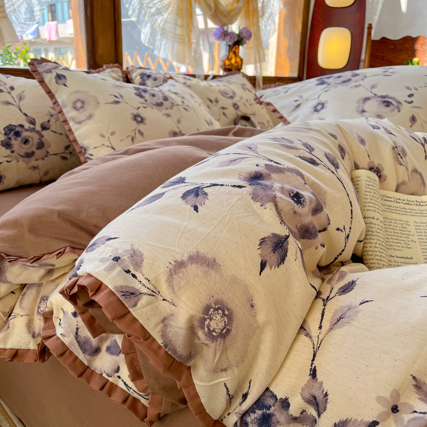 当前位置: 91家纺网 > 商品网购 > 床品套件 > 四件套 > 全棉普通四件套 > (总)金丝鸟家纺 2026春夏新款全棉纯棉棉麻印花木耳花边款四件套