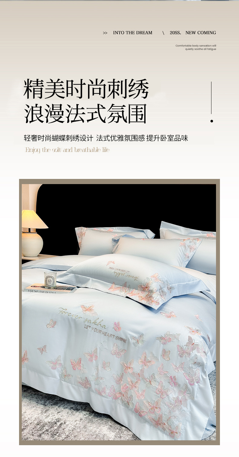 (总)星蕴家纺 2026新款双股长绒棉全棉纯棉刺绣四件套-柏林系列,柏林 贵族白,柏林 星空灰,柏林 云山蓝,柏林 香槟金,柏林 可可粉