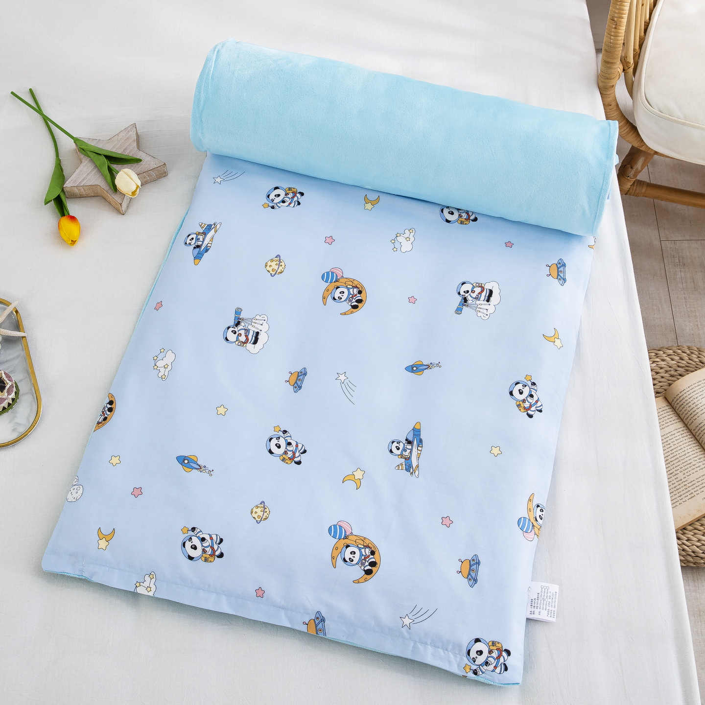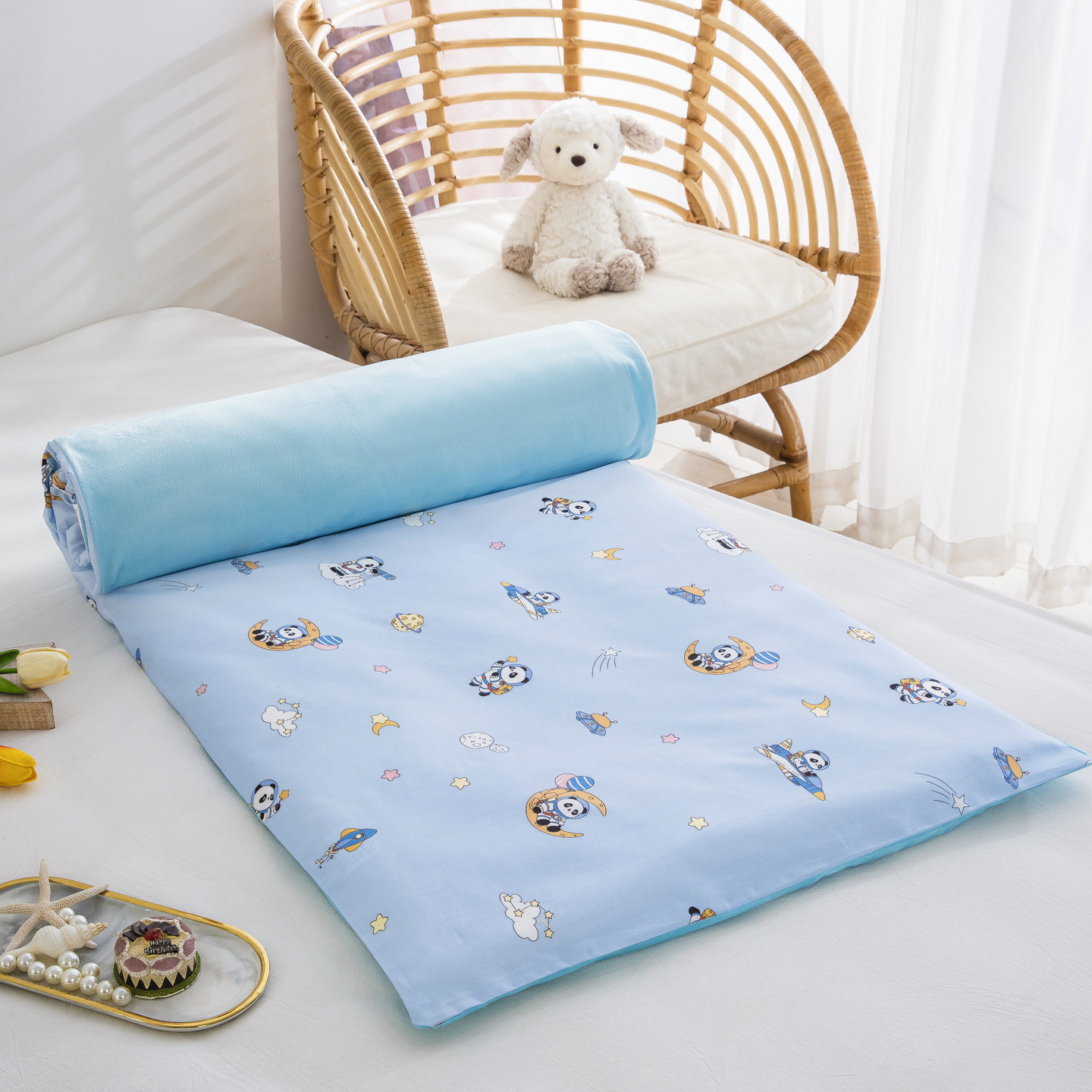 当前位置: 91家纺网 > 商品网购 > 婴童用品 > 婴童床品套件 > 乐秀 2026新款幼儿园双面四季款儿童床垫套+床垫芯 熊猫太空人