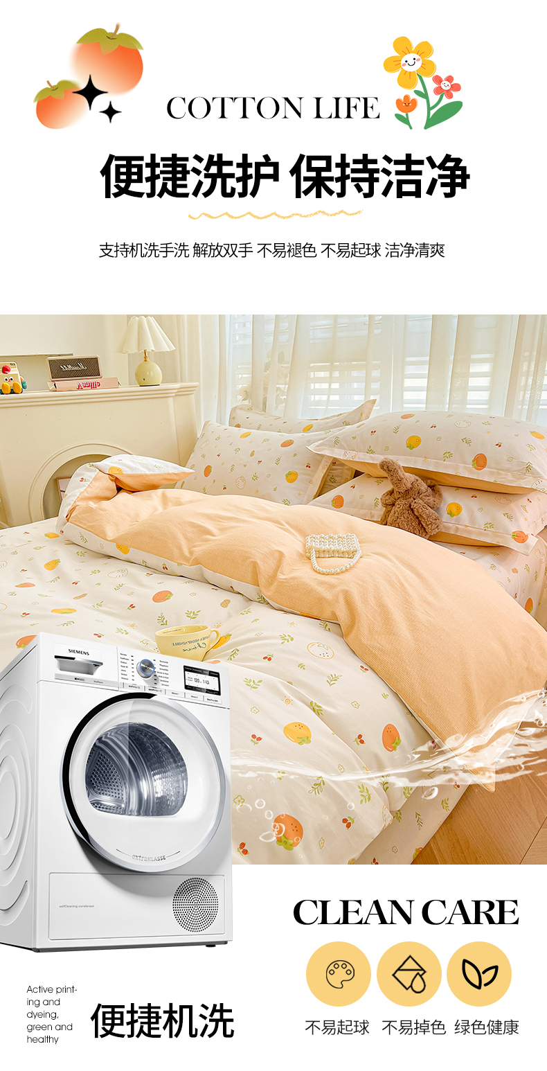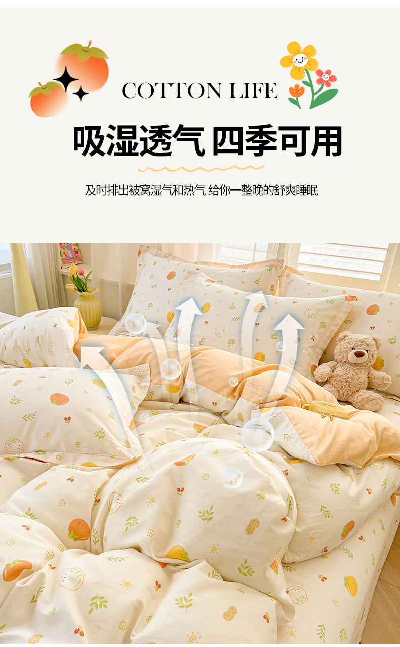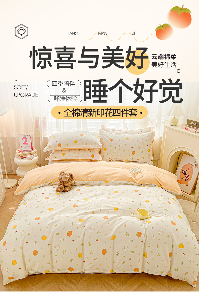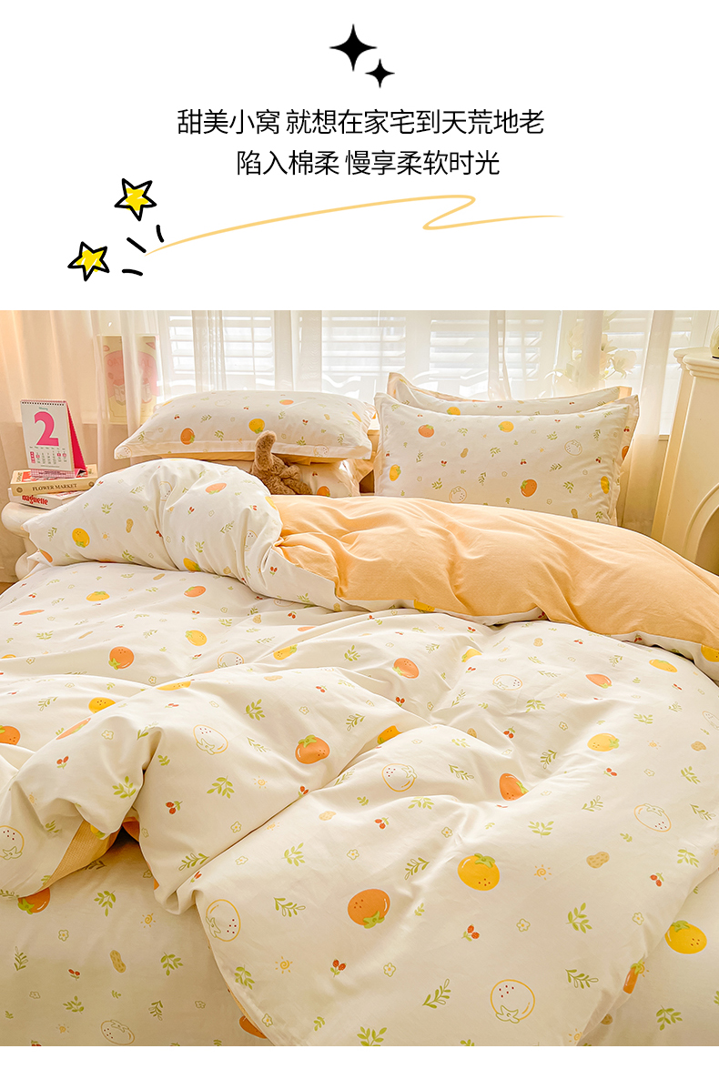 当前位置: 91家纺网 > 商品网购 > 床品套件 > 四件套 > 全棉普通四件套 > 珂博家纺 2026新款12868全棉纯棉小清新印花四件套 好柿发生