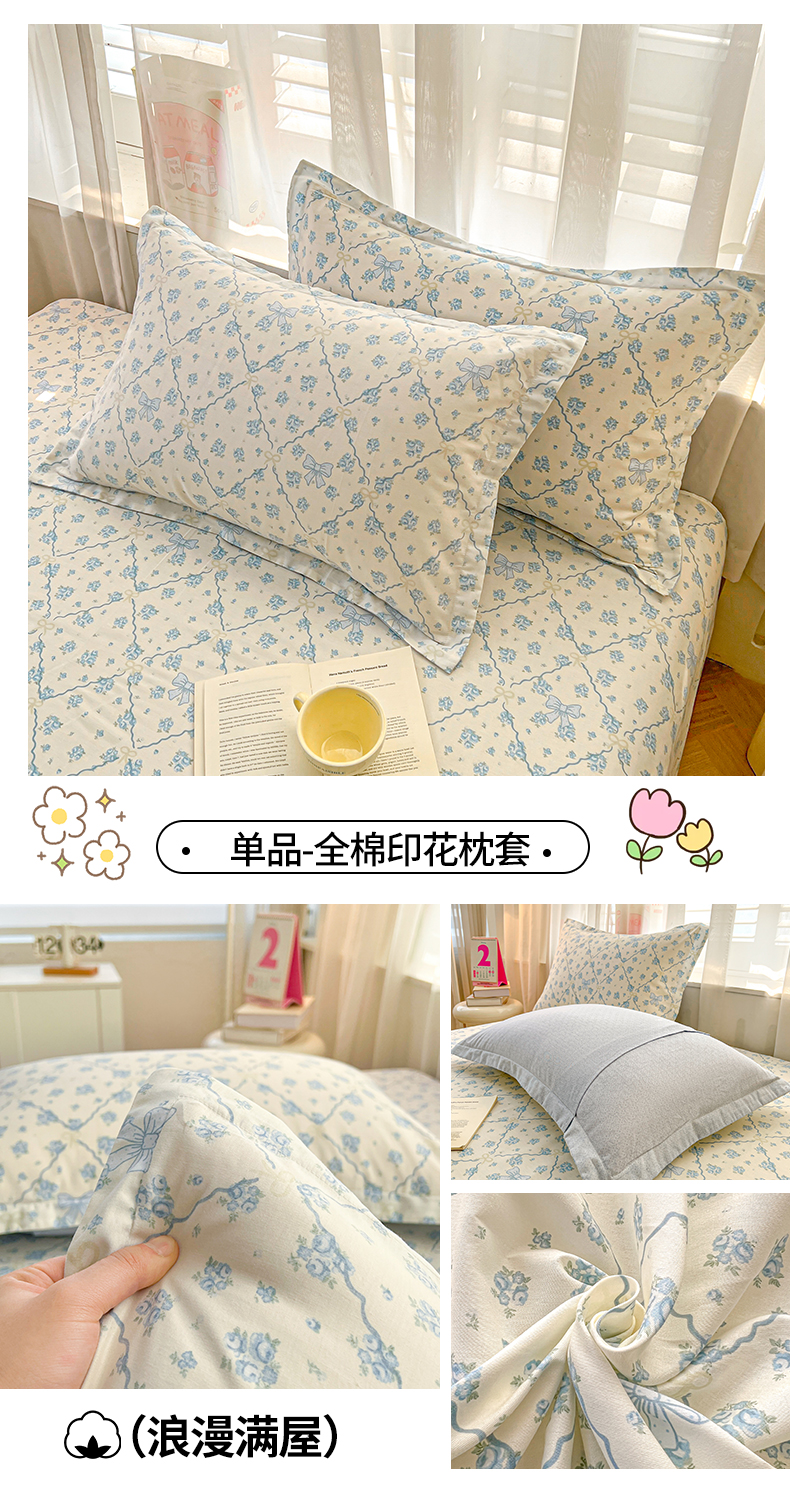 珂博家纺 2026新款12868全棉纯棉小清新印花系列枕套单件单枕套 浪漫满屋