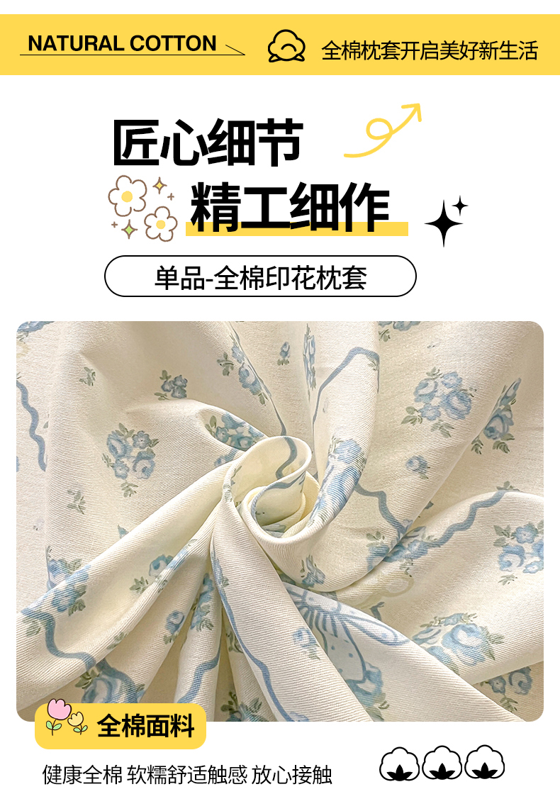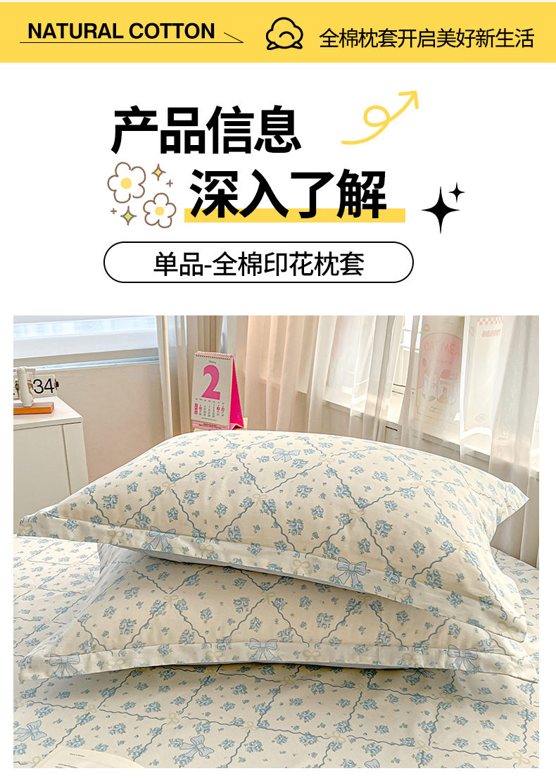 商品名称:珂博家纺 2026新款12868全棉纯棉小清新印花系列枕套单件单枕套 浪漫满屋