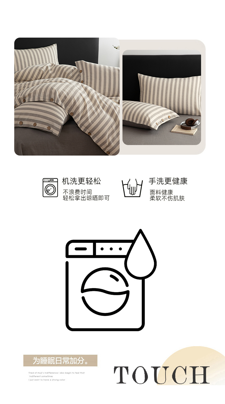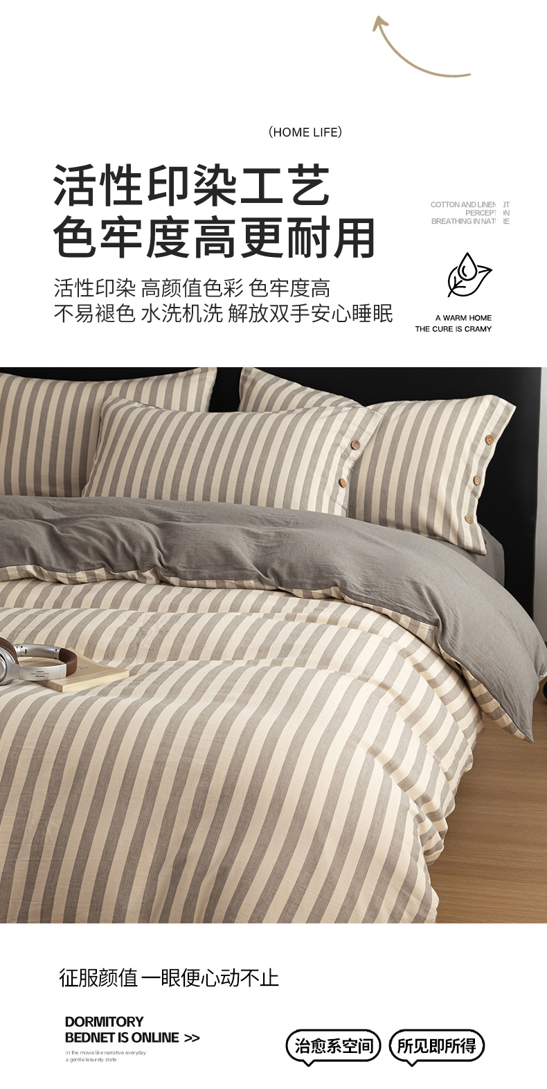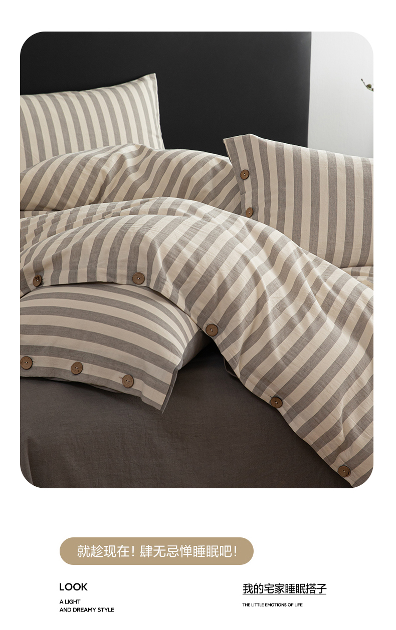 当前位置: 91家纺网 > 商品网购 > 床品套件 > 四件套 > 其它四件套 > 简宜家居(朝初家纺) 2026新款棉麻四件套-条纹格子系列 麻灰-暖梦