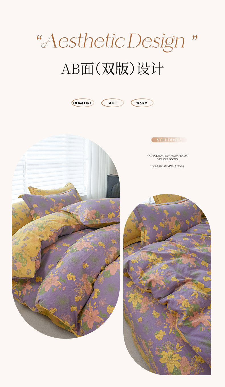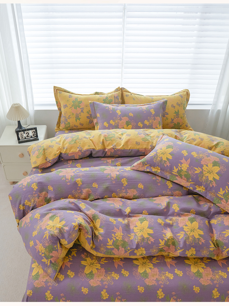 恋之语 2026新款双层纱原麻复古风四件套 野棠晚风