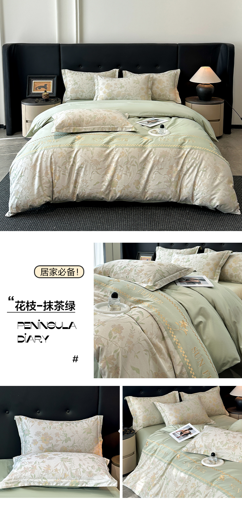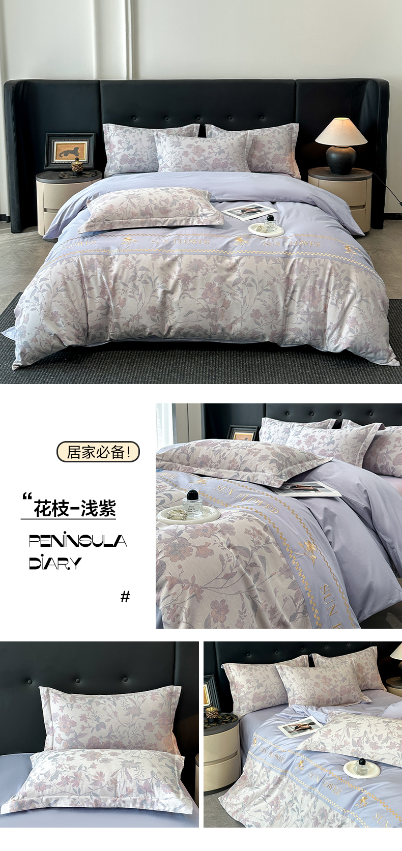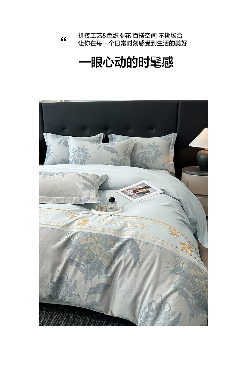 (总)宇航家纺 2026春夏新款简约全棉纯棉拼接60s色织提花绣花四件套,花枝-抹茶绿,蝶梦花影-浅粉,蝶梦花影-浅紫,花枝-浅紫,锦绣繁花-水云蓝,锦绣繁花-香槟