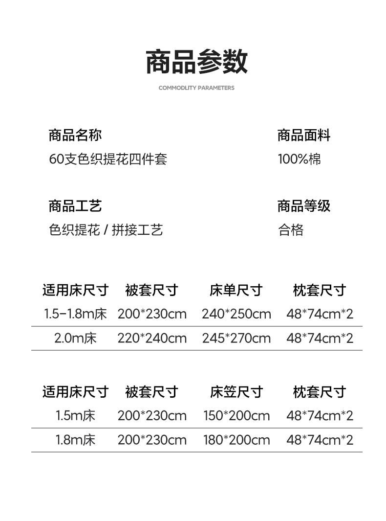 商品名称:(总)宇航家纺 2026春夏新款简约全棉纯棉拼接60s色织提花绣花四件套