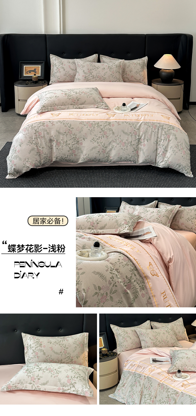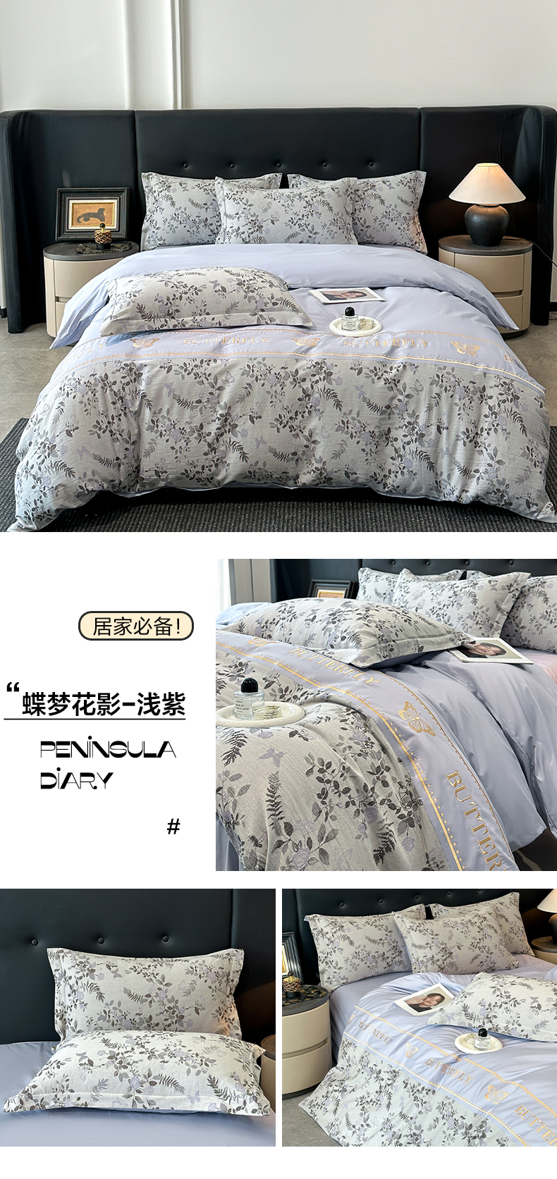 (总)宇航家纺 2025新款专版四季款亮丝提花加厚磨毛四件套,蝶恋花—白拼浅灰,蝶恋花—粉玉,蝶恋花—奶白,蝶恋花—天蓝,蝶恋花—银灰