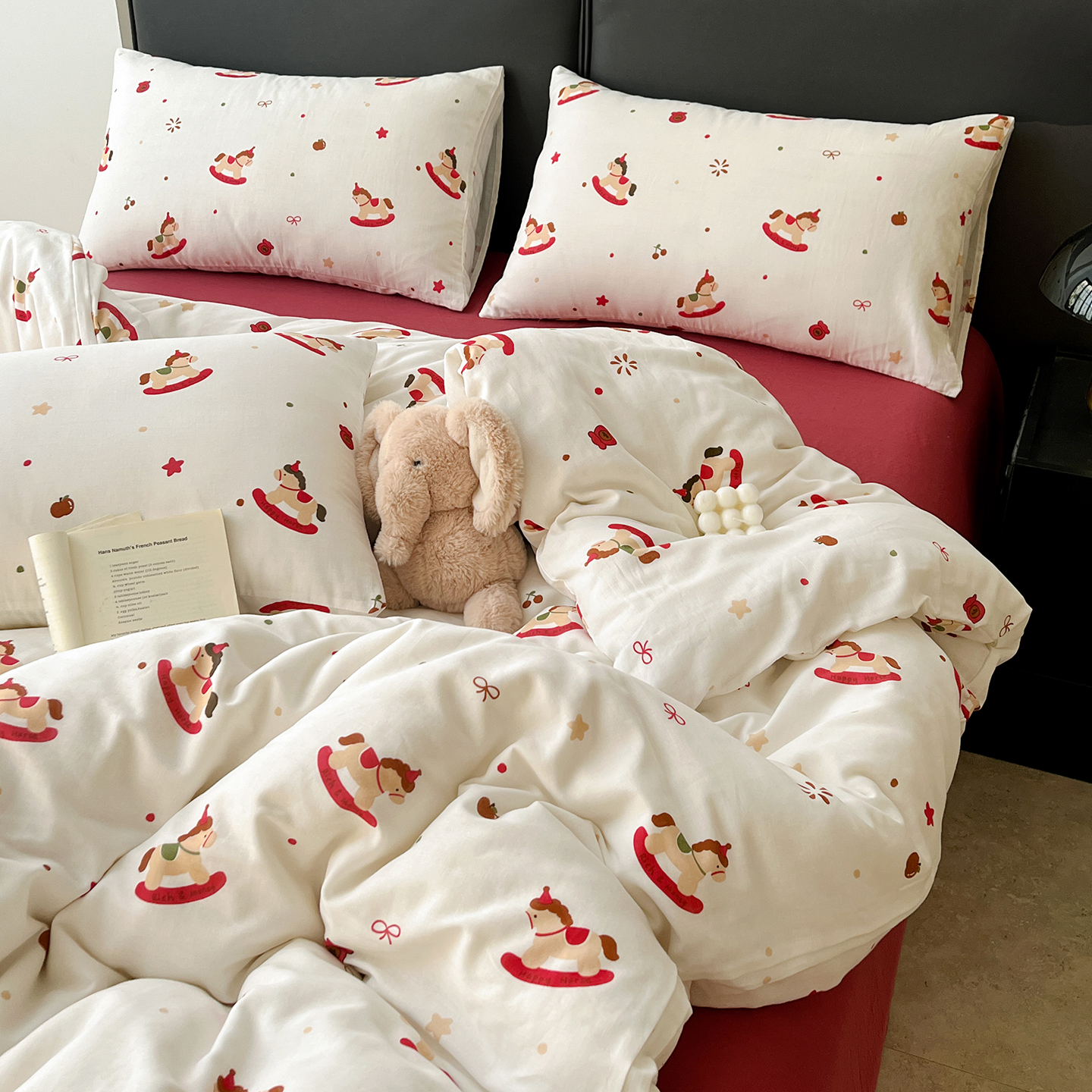 (总)一比一家纺 2026新款亲肤舒适仿棉印花床盖四件套,组合图仅供展示不可下单,豹纹喵咖,蛋糕派,灰小格,马戏团,萌萌兔,梦幻灰,梦幻紫,南瓜季,泡芙小象,皮皮狗,奇奇,圣诞夜,甜心喵,童趣,五彩斑斓,小木马,小时光,小熊头,鱼多多,逐梦