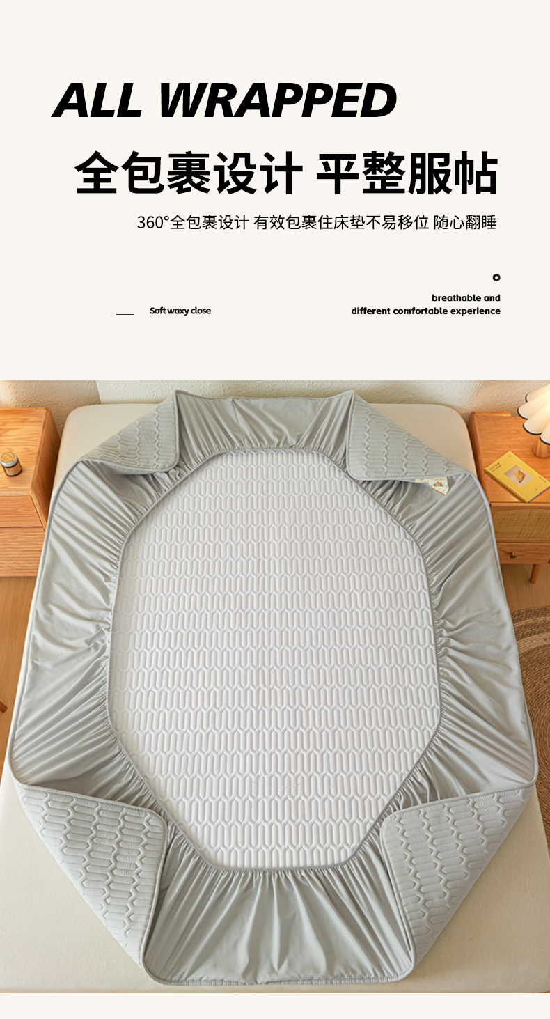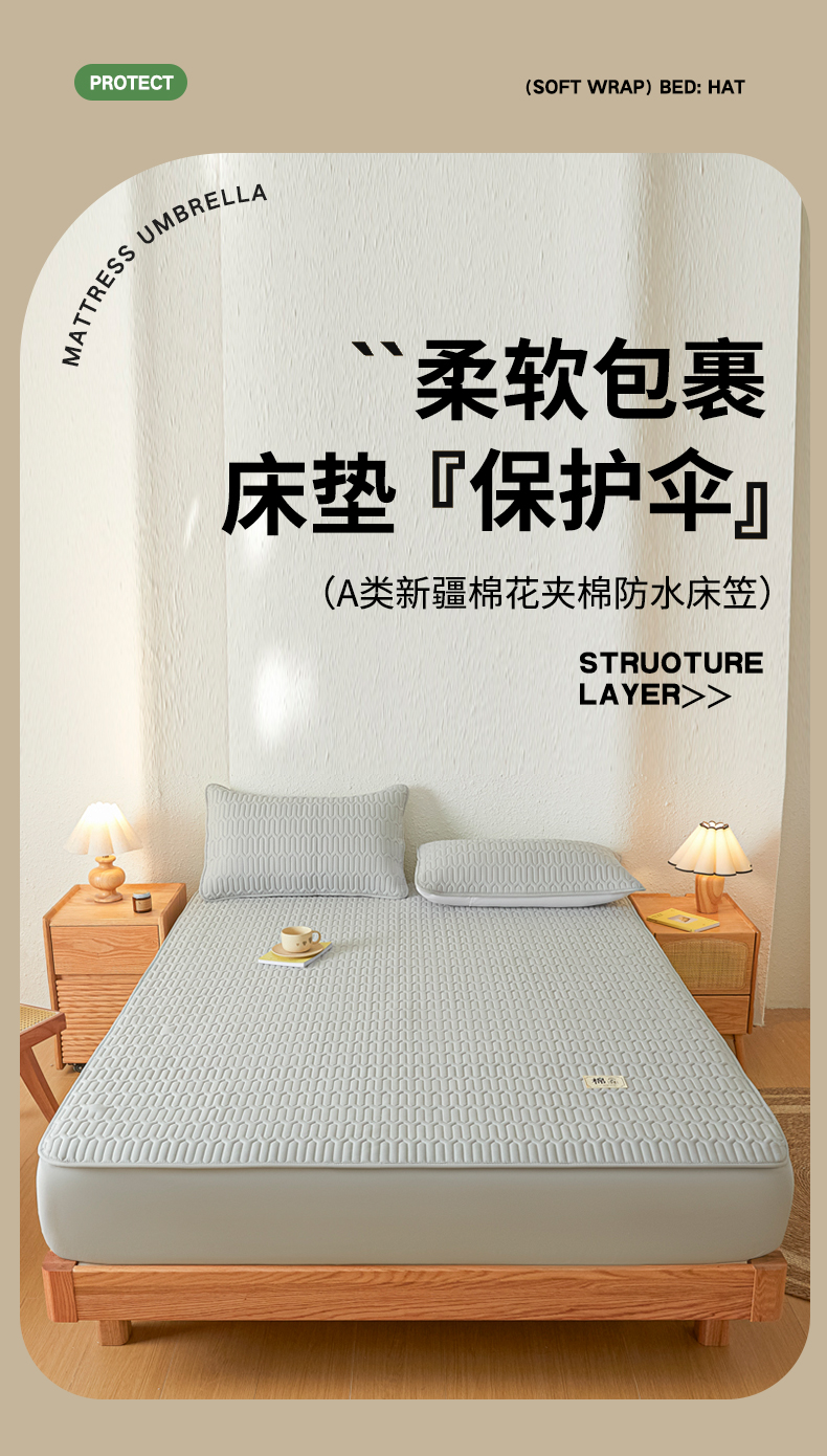 女子家纺 2026新款新款A类新疆棉花夹棉防水单品床笠 小竹纹-浅灰