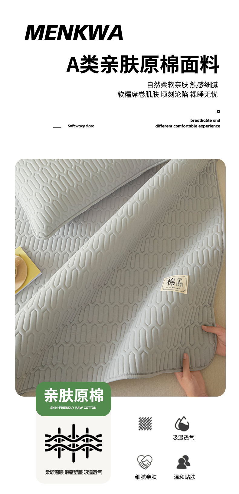 商品名称:女子家纺 2026新款新款A类新疆棉花夹棉防水单品床笠 小竹纹-浅灰