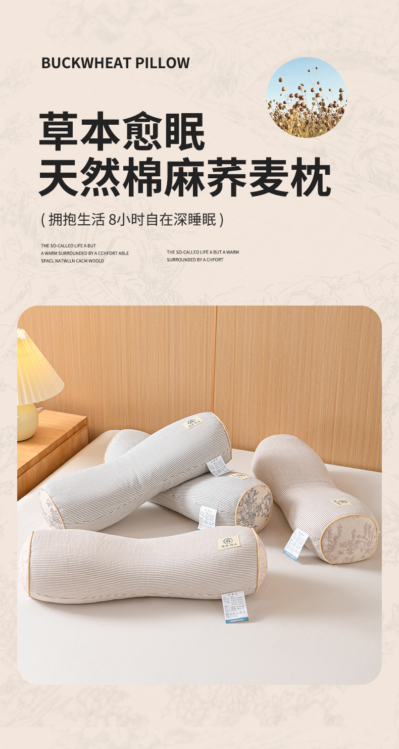 当前位置: 91家纺网 > 商品网购 > 枕头/枕芯/保健枕/颈椎枕 > 枕头枕芯 > (总)仁宇枕业 2026新款新品棉麻款条纹头枕颈枕系列荞麦枕头枕芯