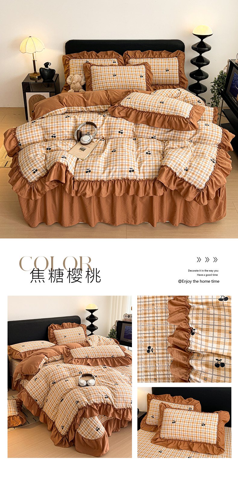 当前位置: 91家纺网 > 商品网购 > 床品套件 > 四件套 > 双层纱四件套 > 富米莱(原臻工厂) 2026新款敲可爱奶呼呼云感双层纱韩国大布袋韩版大花边床盖床裙四件套-超级治愈 大脸二胡猫-咖