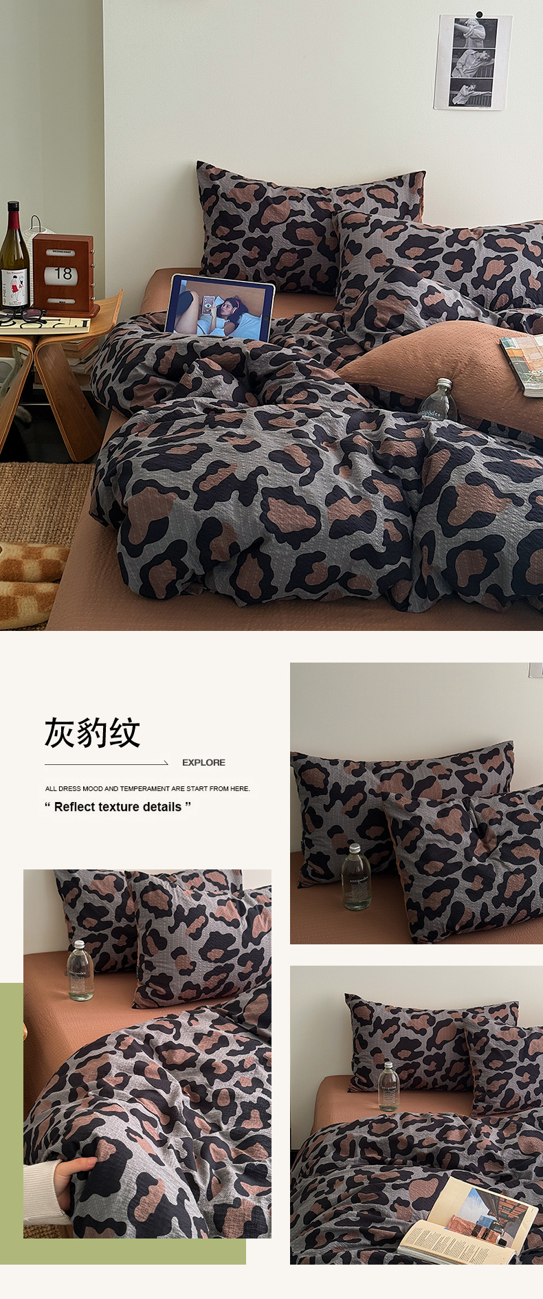 (总)初念 2026春夏新款泡芙莎贴布绣豹豹猫猫四件套,豹豹猫猫-粉,豹豹猫猫--咖,豹豹猫猫-蓝,豹豹猫猫--蓝,豹豹猫猫--紫