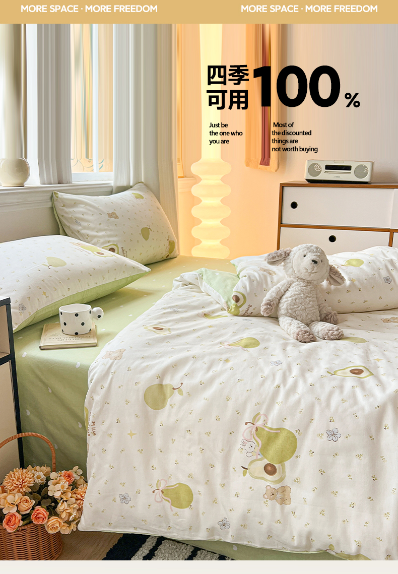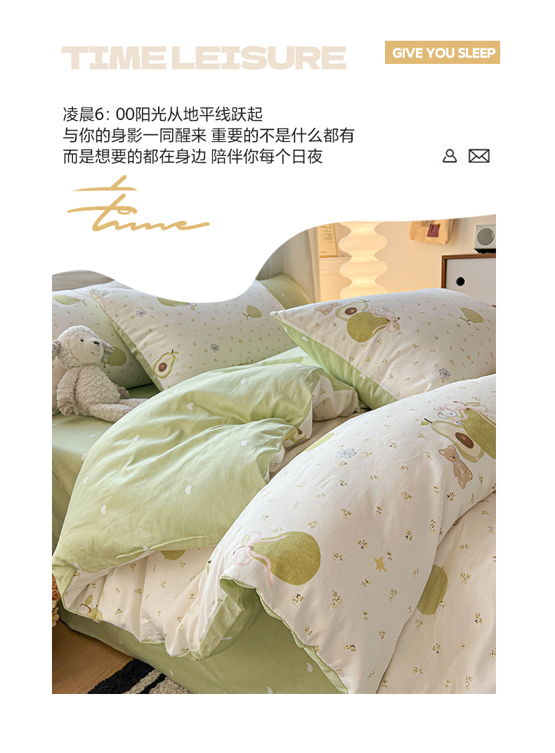 盛馨家纺 2026年开学季春夏新品小清新全棉学生三件套四件套床笠四件套跑量款 牛油果兔