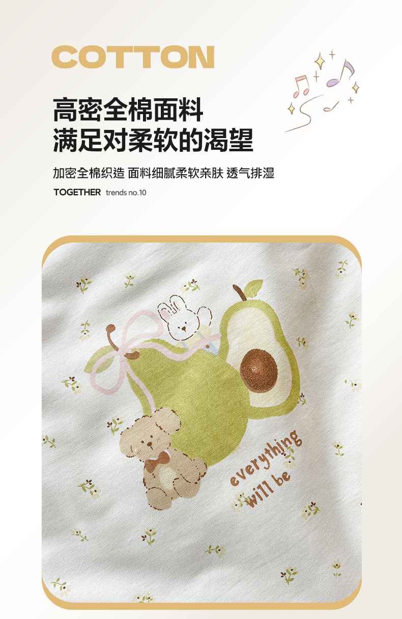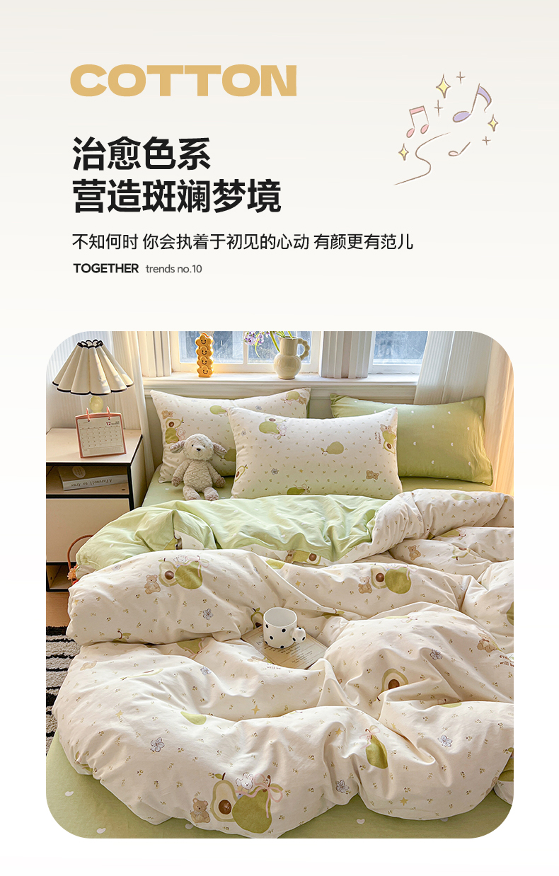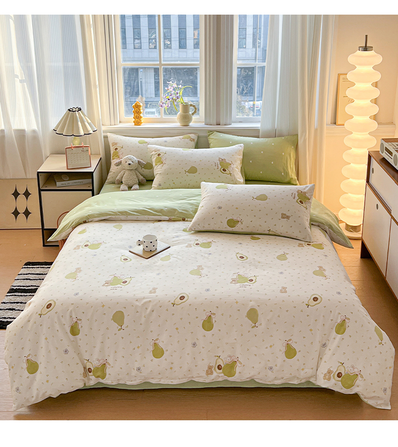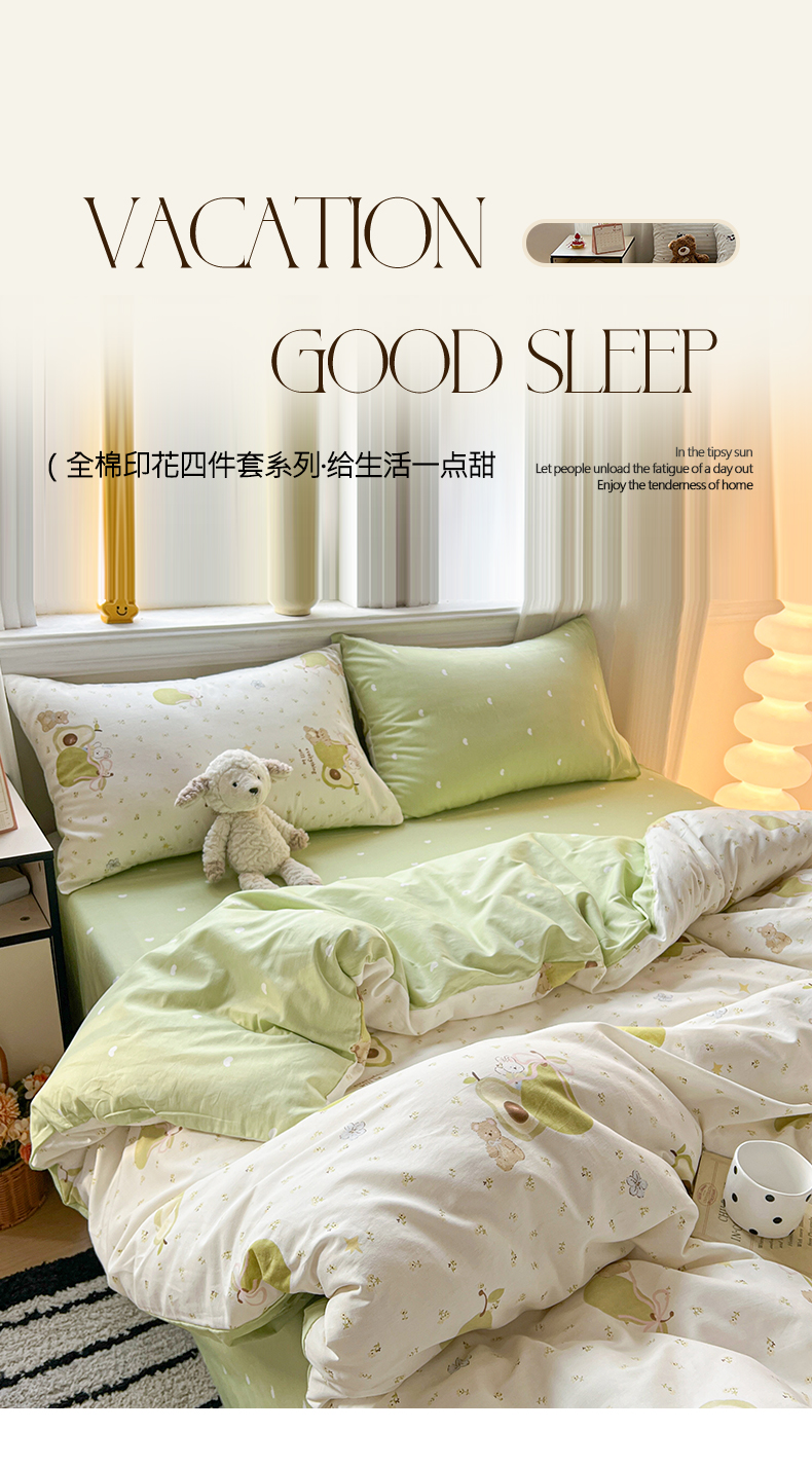 商品名称:盛馨家纺 2026年开学季春夏新品小清新全棉学生三件套四件套床笠四件套跑量款 牛油果兔
