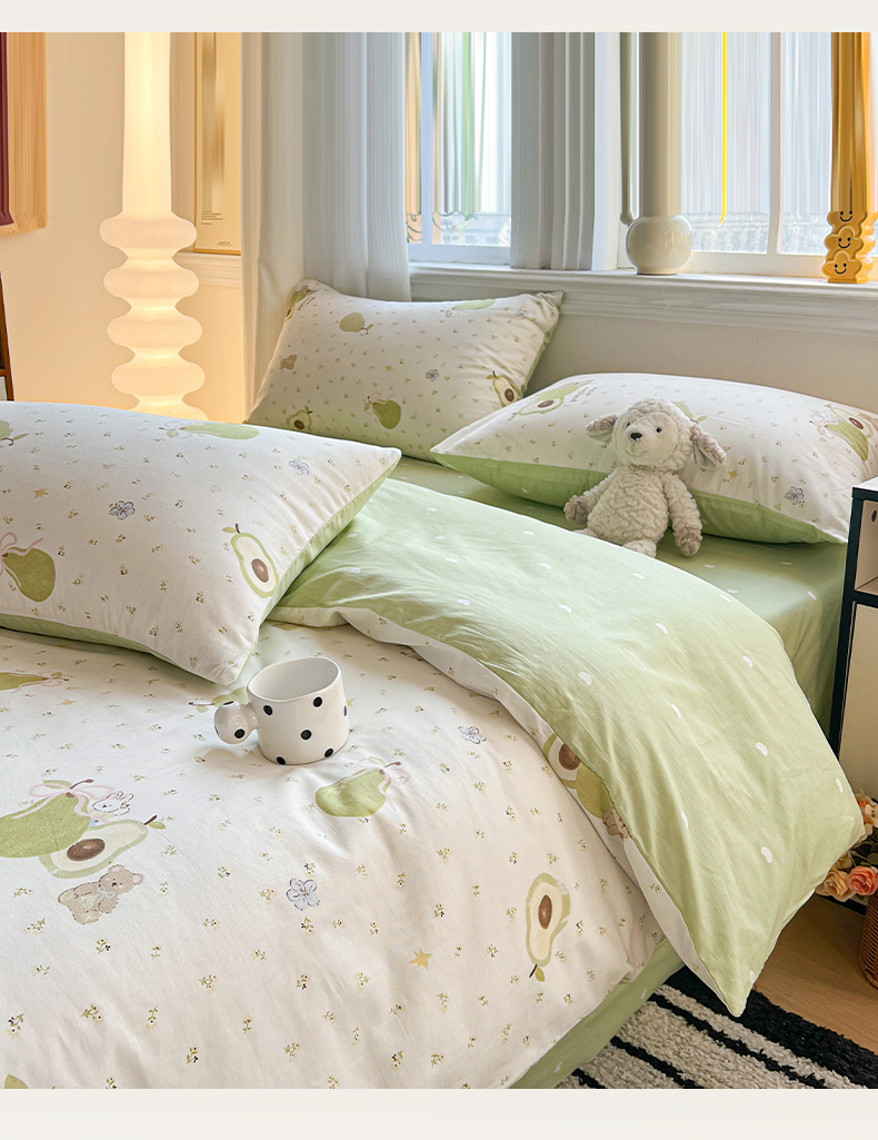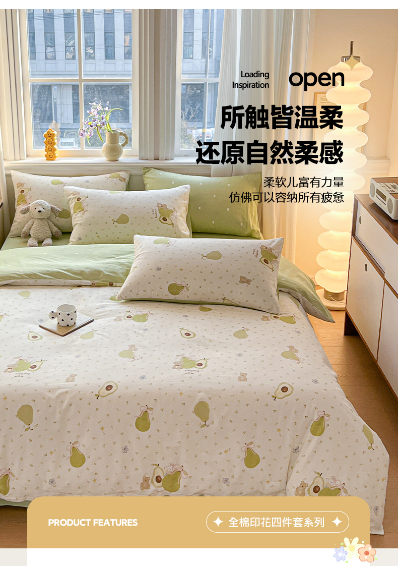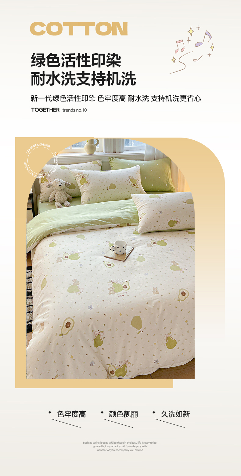 商品名称:盛馨家纺 2026年开学季春夏新品小清新全棉学生三件套四件套床笠四件套跑量款 牛油果兔