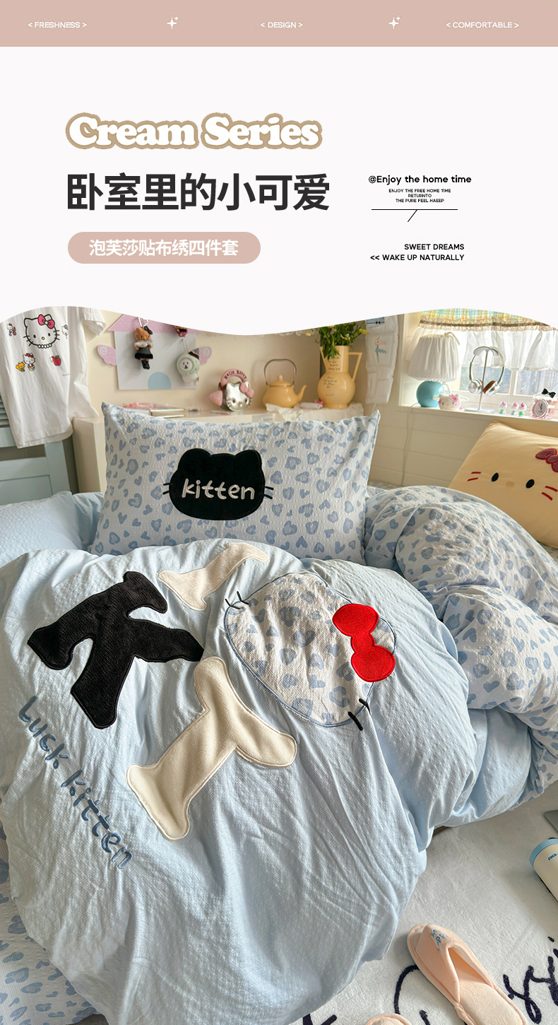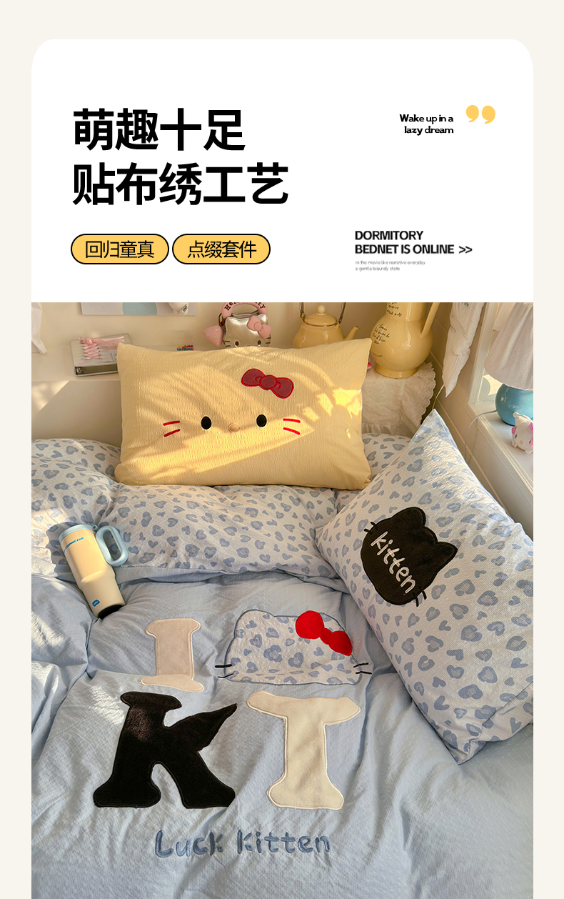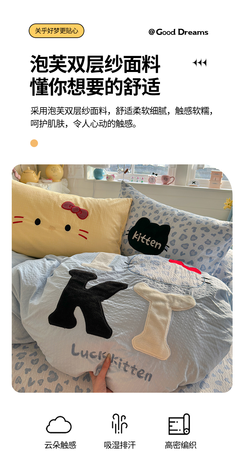 当前位置: 91家纺网 > 商品网购 > 床品套件 > 四件套 > 其它四件套 > 初念 2026春夏新款泡芙莎贴布绣豹豹猫猫四件套 豹豹猫猫-蓝