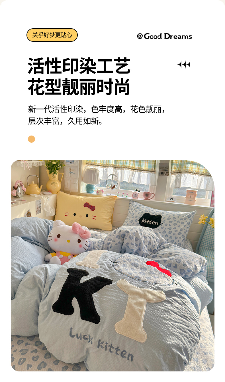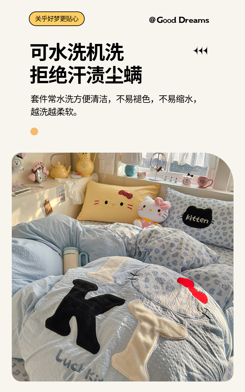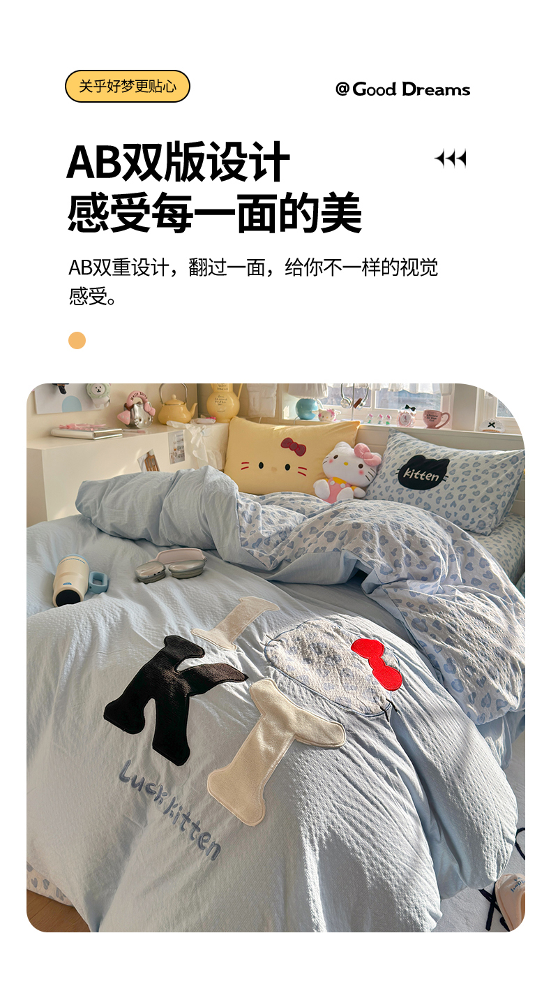 当前位置: 91家纺网 > 商品网购 > 床品套件 > 四件套 > 其它四件套 > 初念 2026春夏新款泡芙莎贴布绣豹豹猫猫四件套 豹豹猫猫-蓝