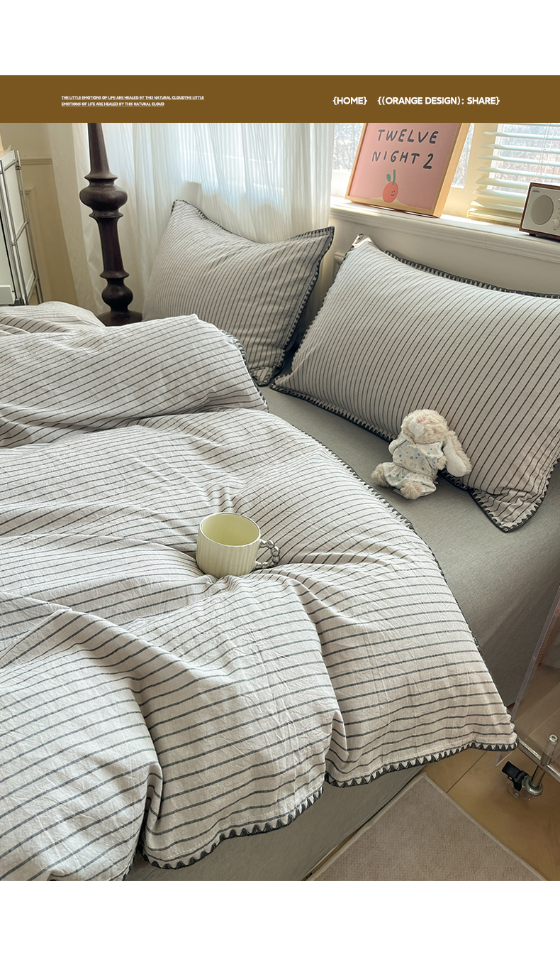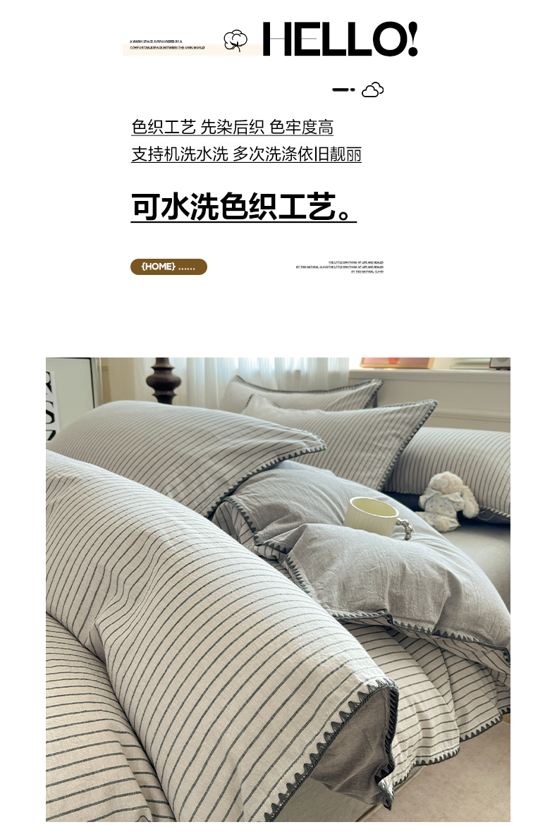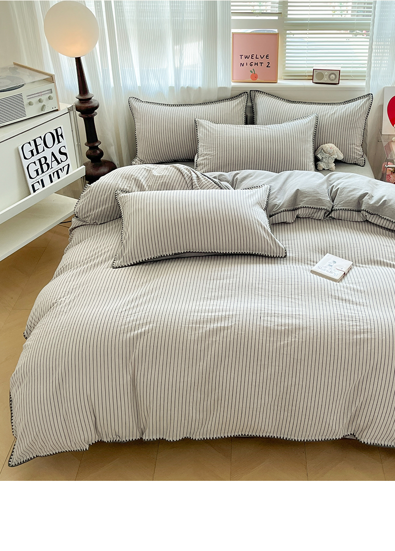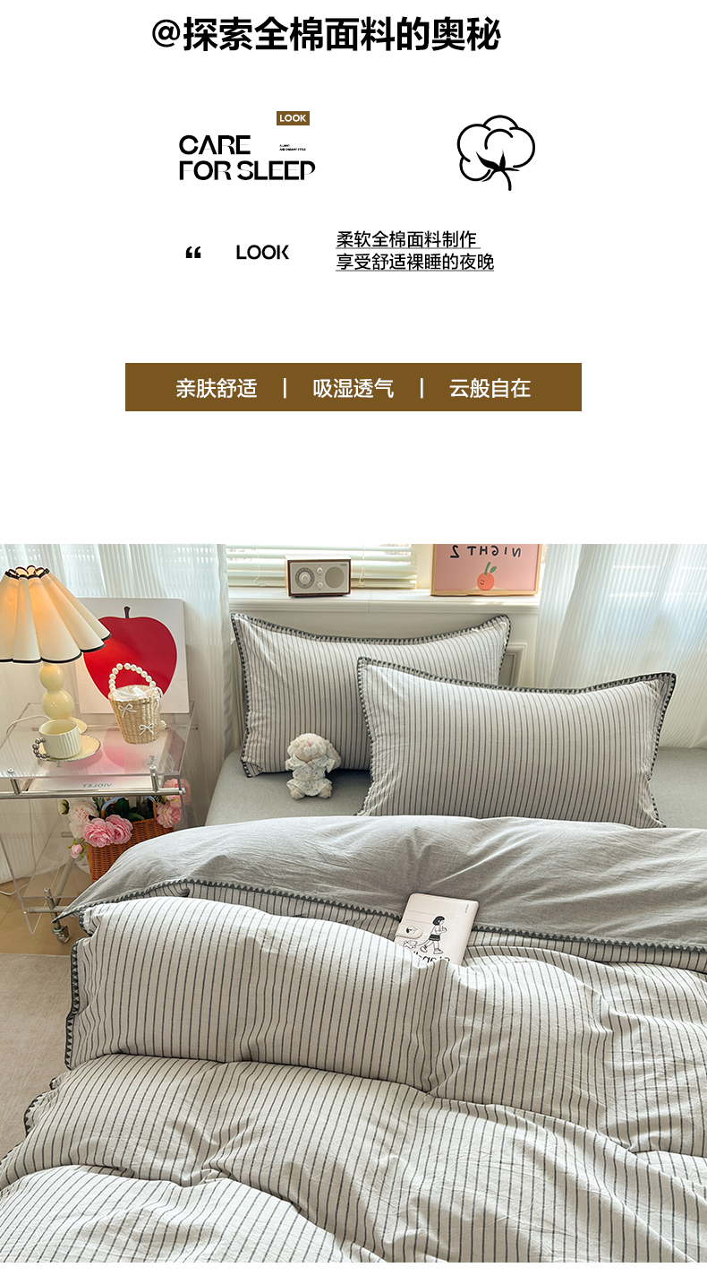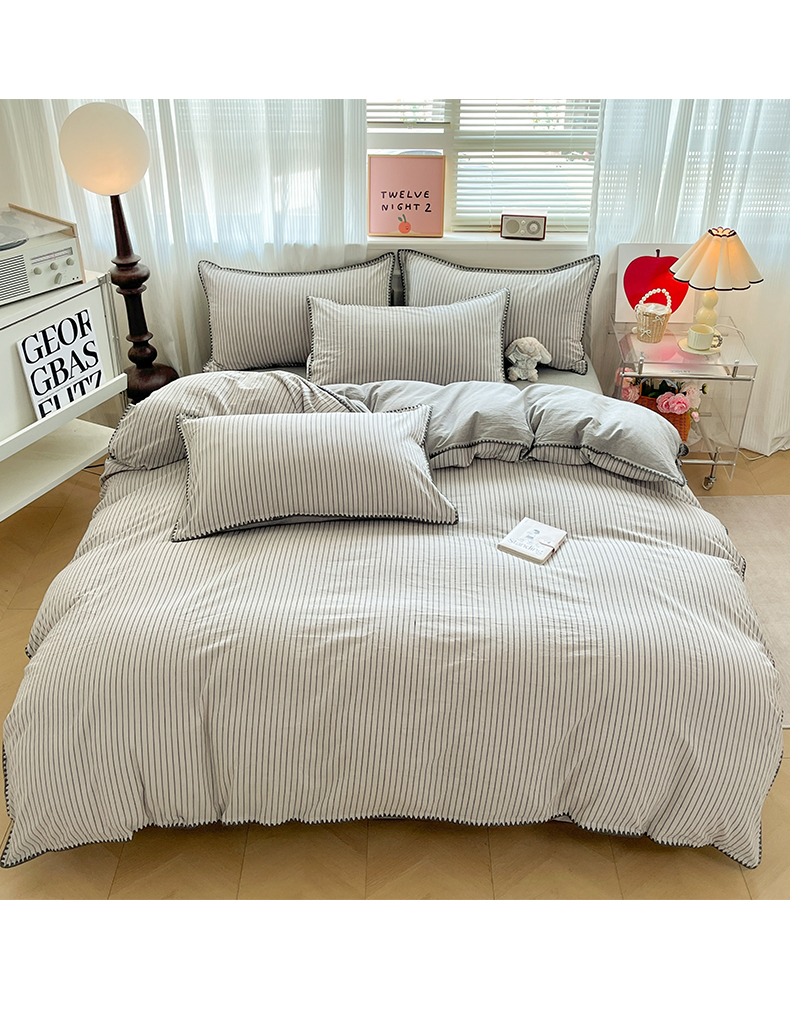 当前位置: 91家纺网 > 商品网购 > 床品套件 > 四件套 > 全棉普通四件套 > 如一 2026春夏新款色织全棉纯棉加密水洗棉条纹三角针四件套 晴空灰