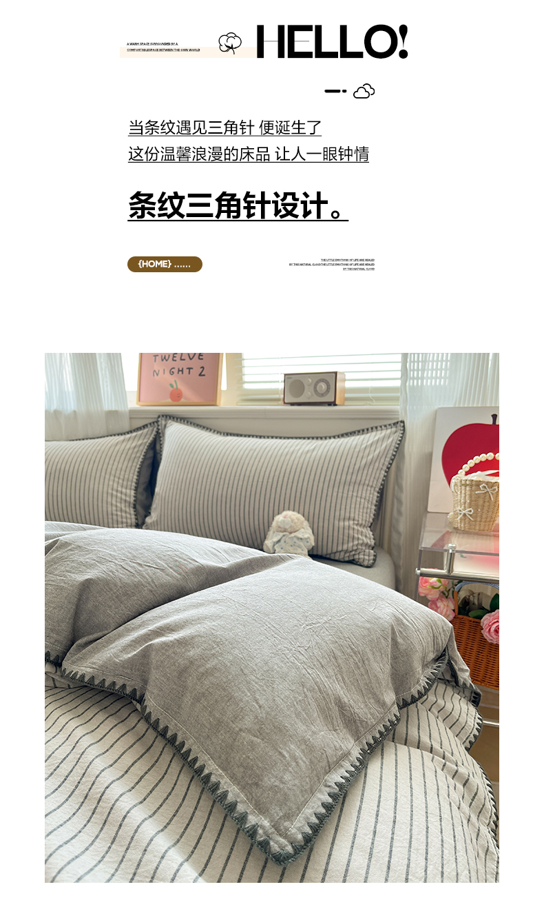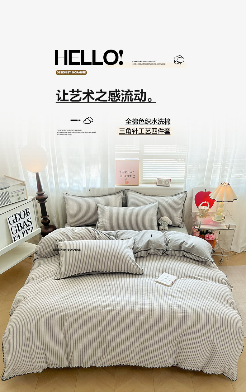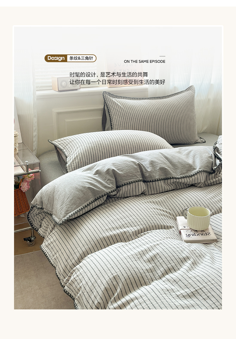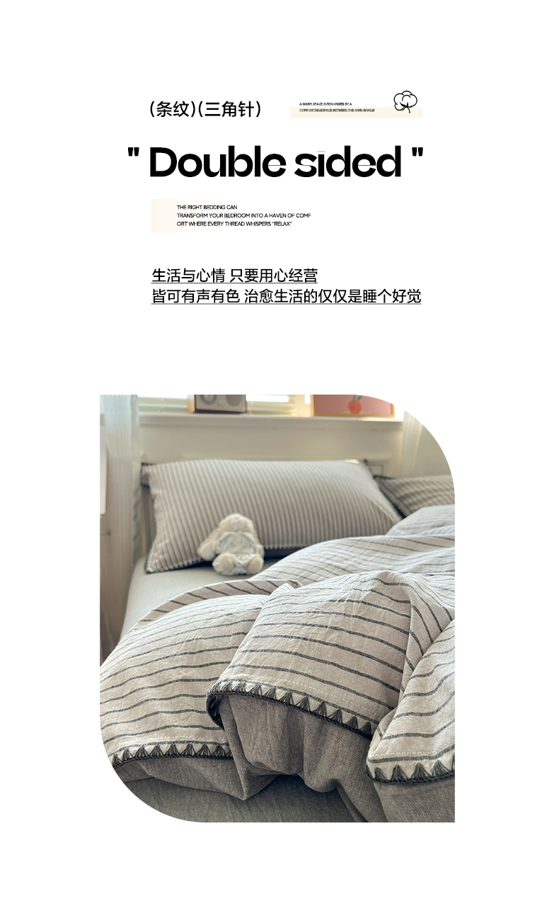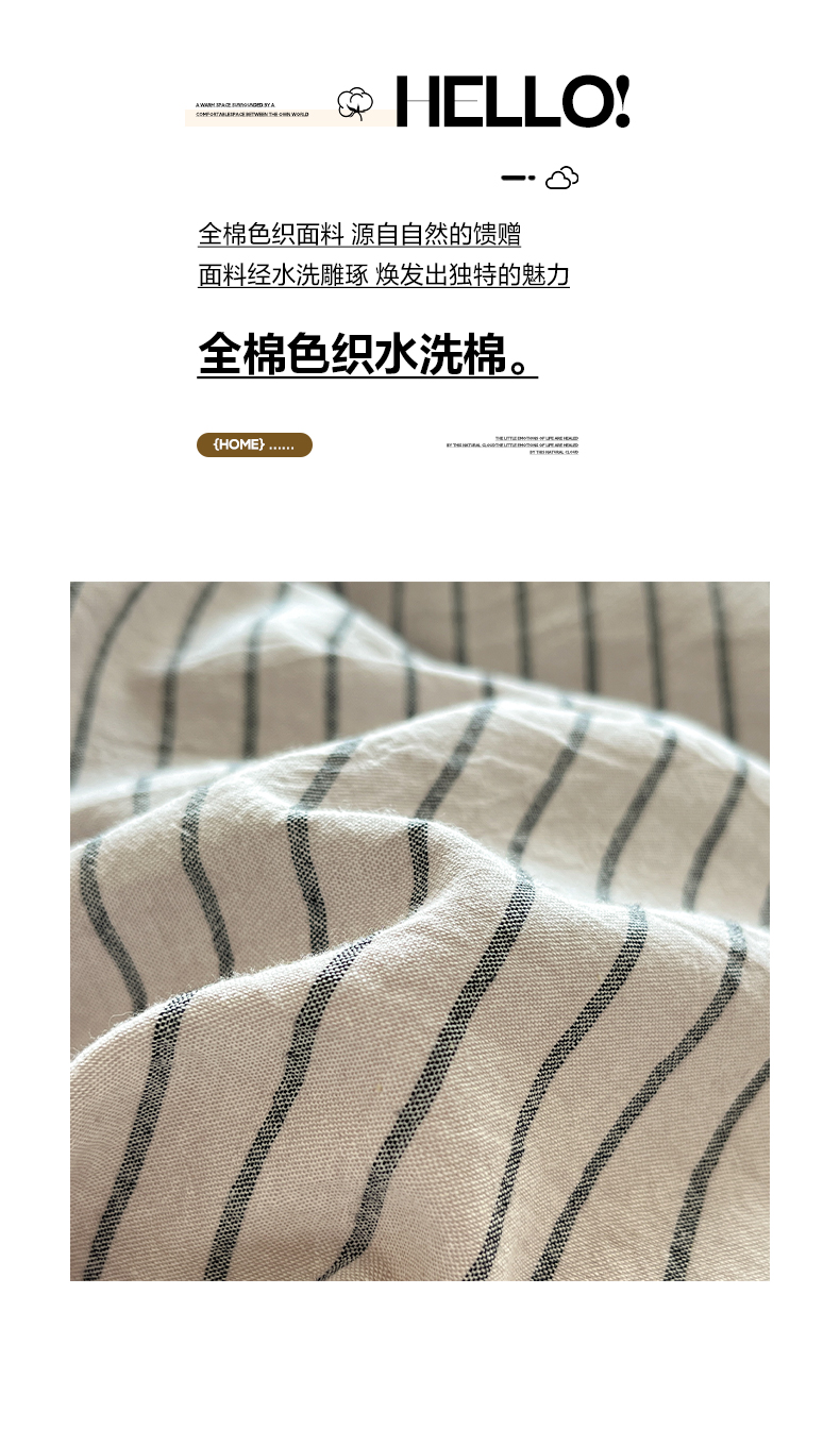 当前位置: 91家纺网 > 商品网购 > 床品套件 > 四件套 > 全棉普通四件套 > 如一 2026春夏新款色织全棉纯棉加密水洗棉条纹三角针四件套 晴空灰