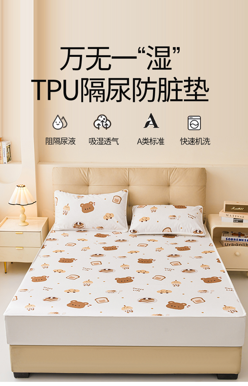 当前位置: 91家纺网 > 商品网购 > 床上用品 > 床笠 > 女子家纺 2026春夏新款TPU防水隔尿床护垫床笠款印花小清新卡通儿童床垫保护套 防水床笠-小能派对