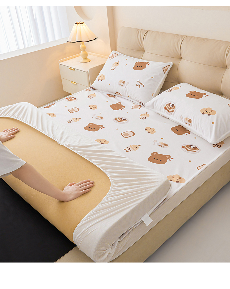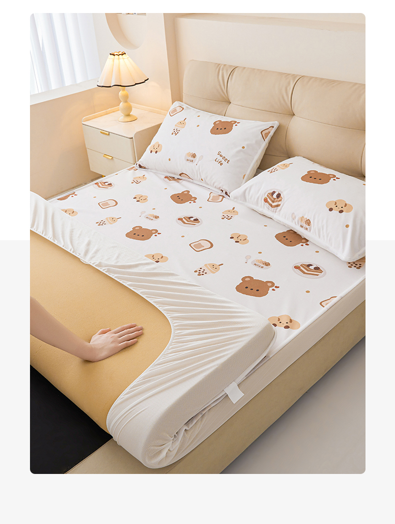 女子家纺 2026春夏新款TPU防水隔尿床护垫床笠款印花小清新卡通儿童床垫保护套 防水床笠-小能派对