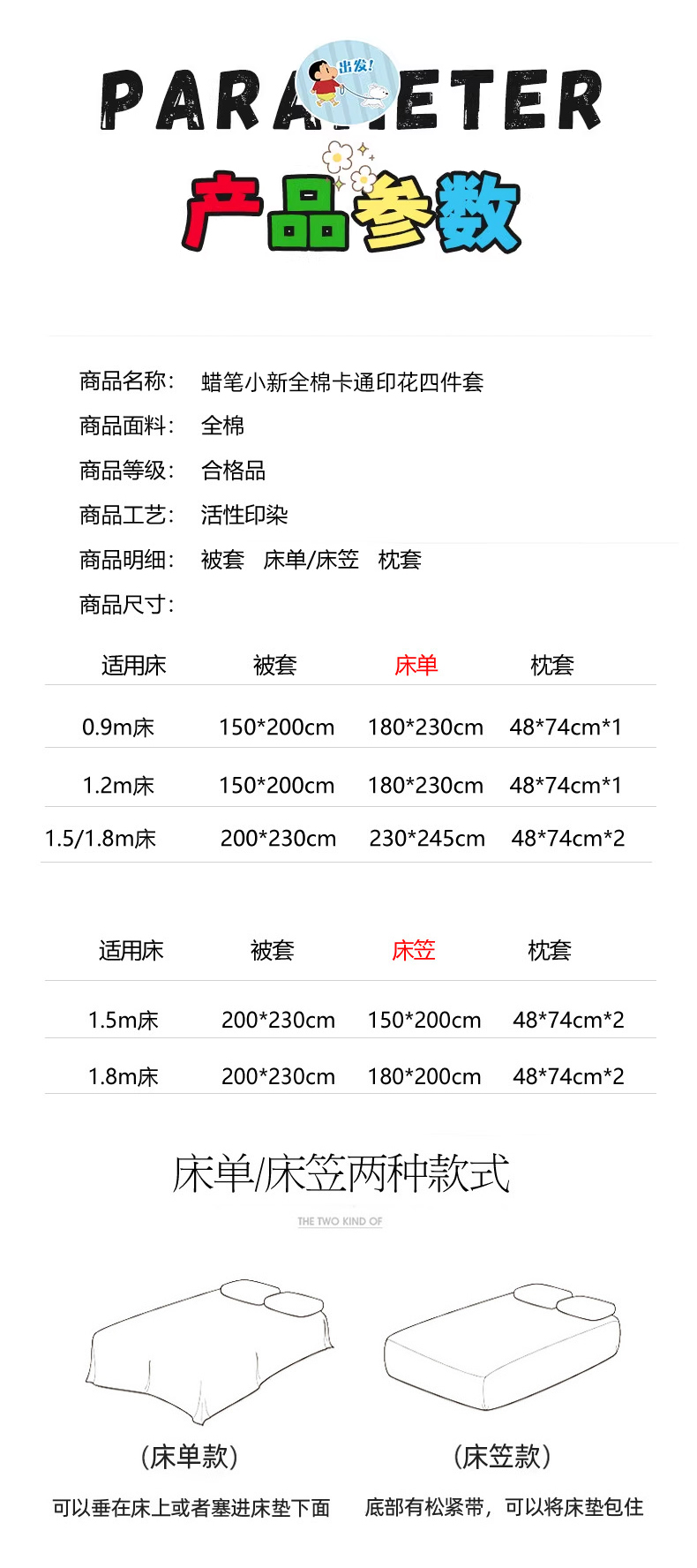 商品名称:(总)耀悦家纺 2026新款卡通蜡笔小新正版授权全棉纯棉四件套