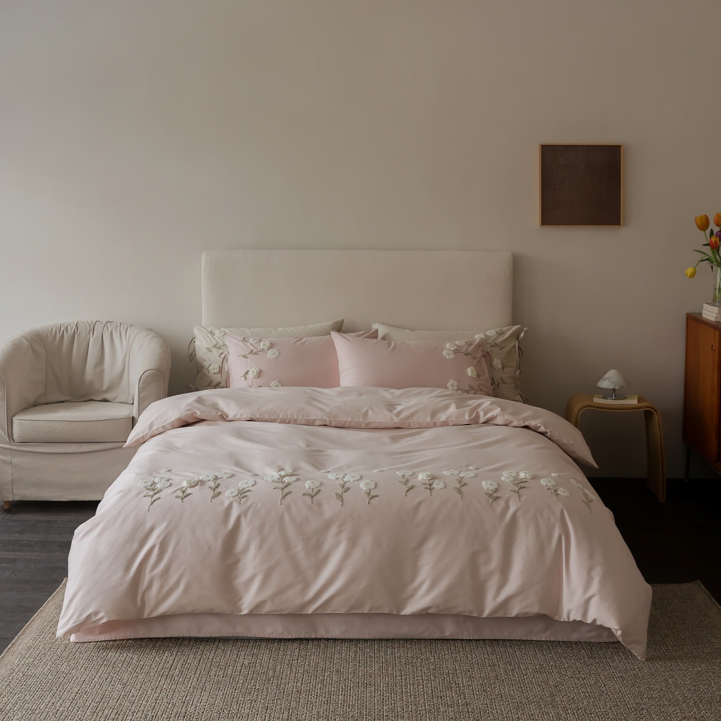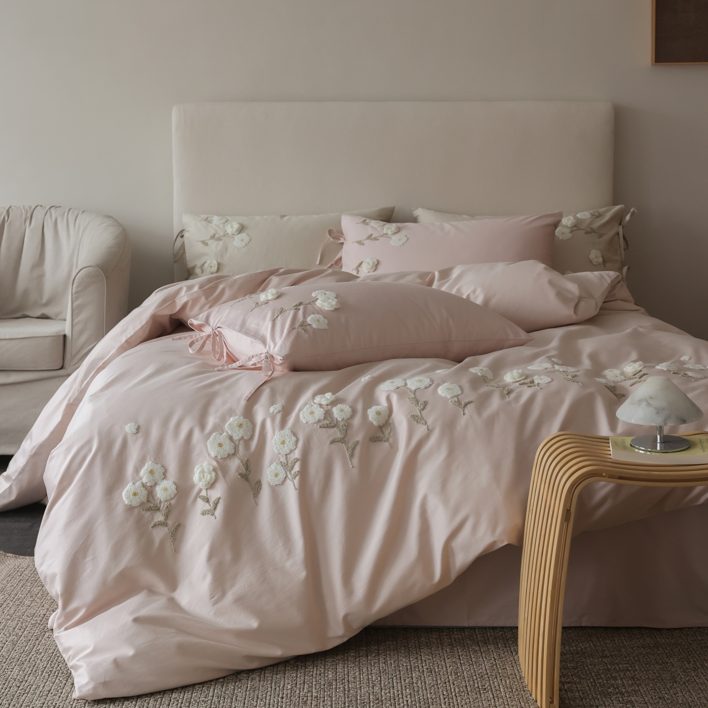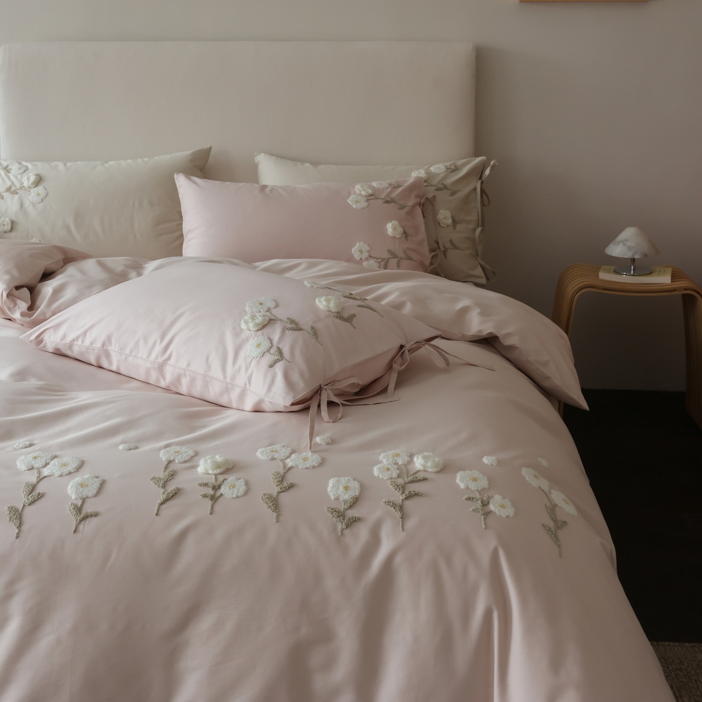 (总)初拾 2025新款全棉简约刺绣四件套-柏林,柏林-浅香槟,柏林-浅云蓝,柏林-雅灰粉