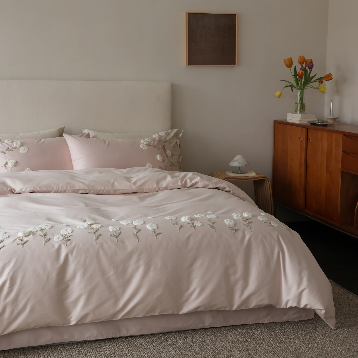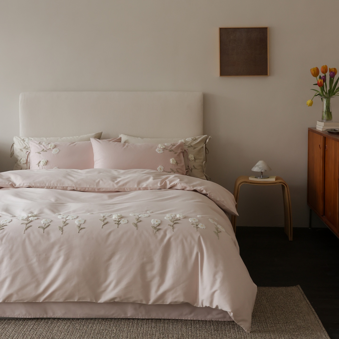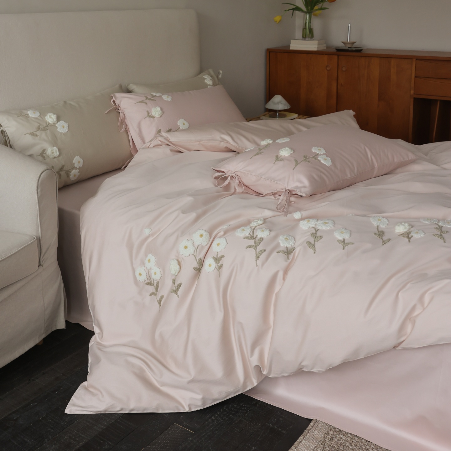(总)初拾 2025新款全棉简约刺绣四件套-柏林,柏林-浅香槟,柏林-浅云蓝,柏林-雅灰粉