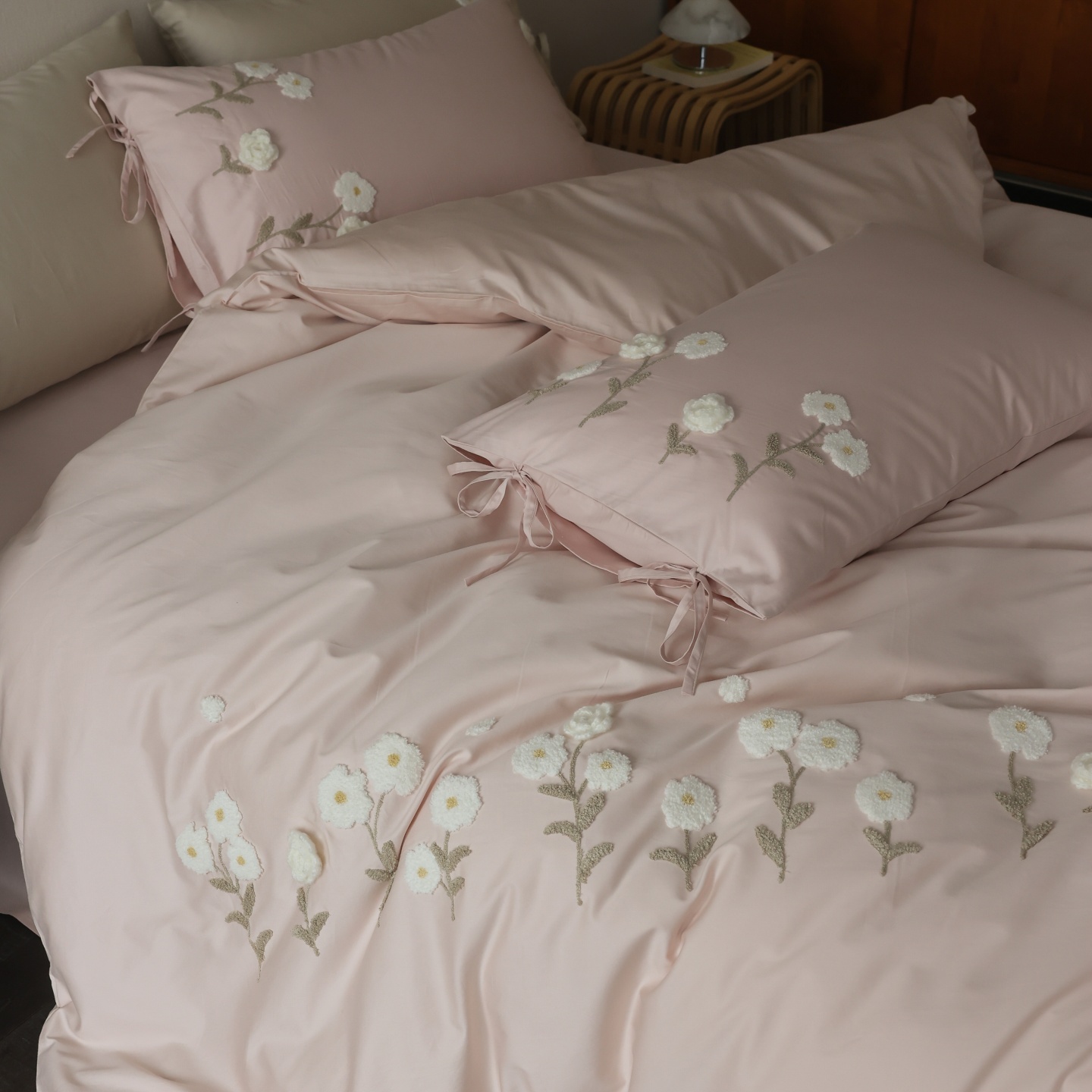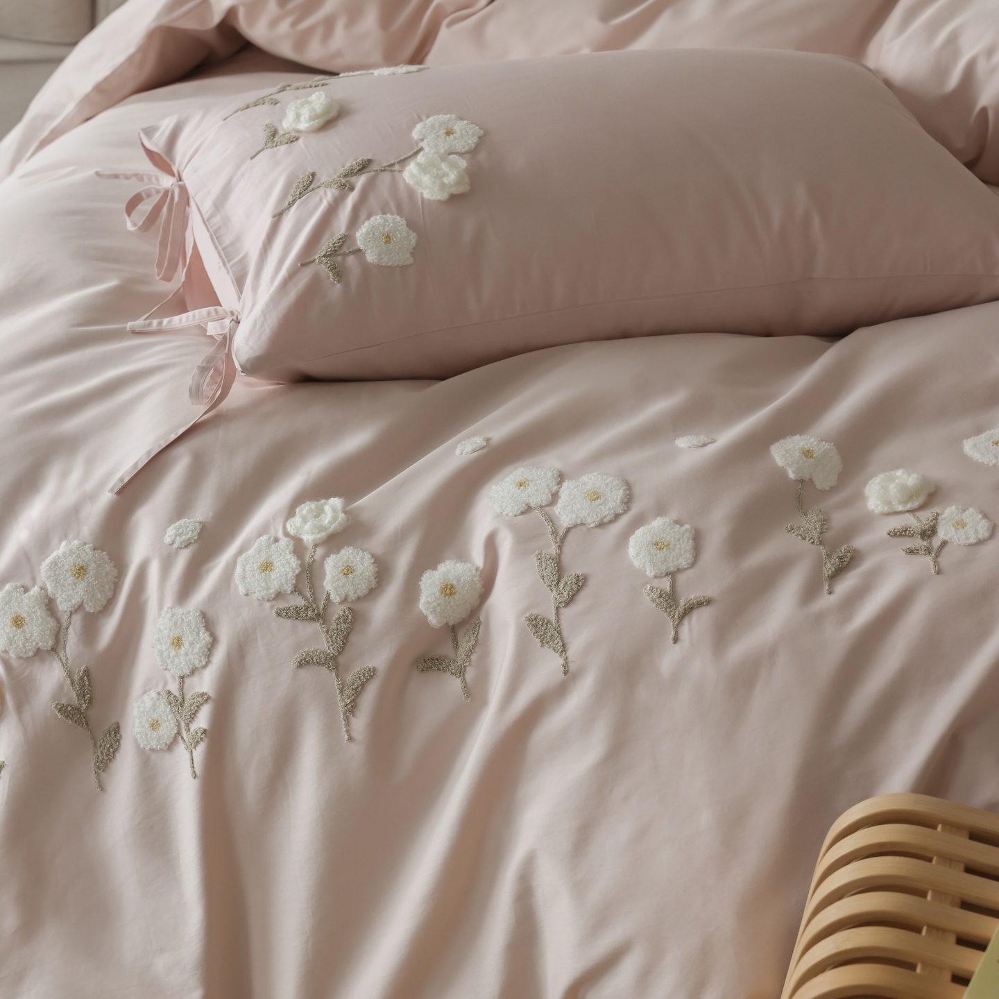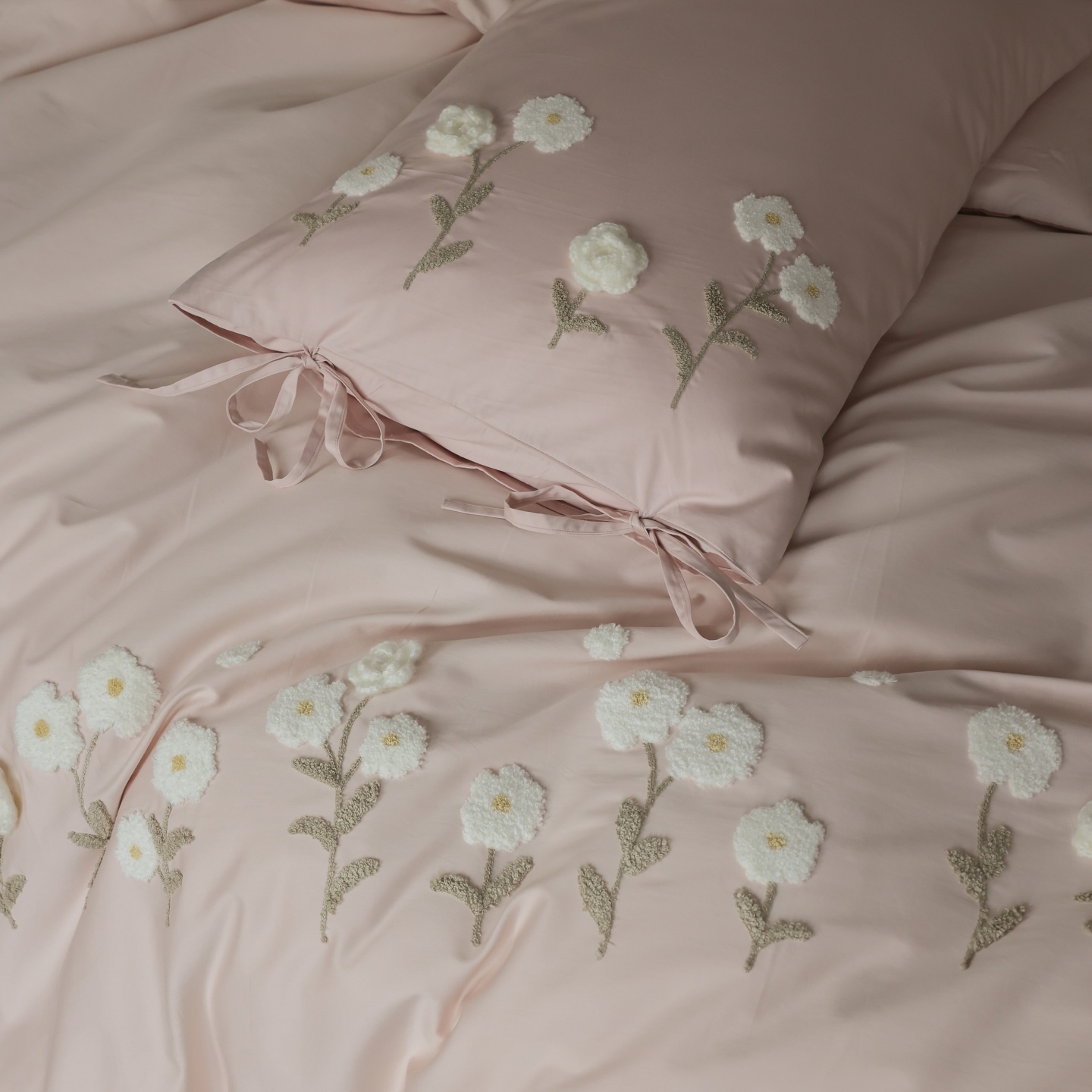 (总)初拾 2025新款全棉刺绣四件套—圣黛(棉),棉圣黛-果绿,棉圣黛-少女粉
