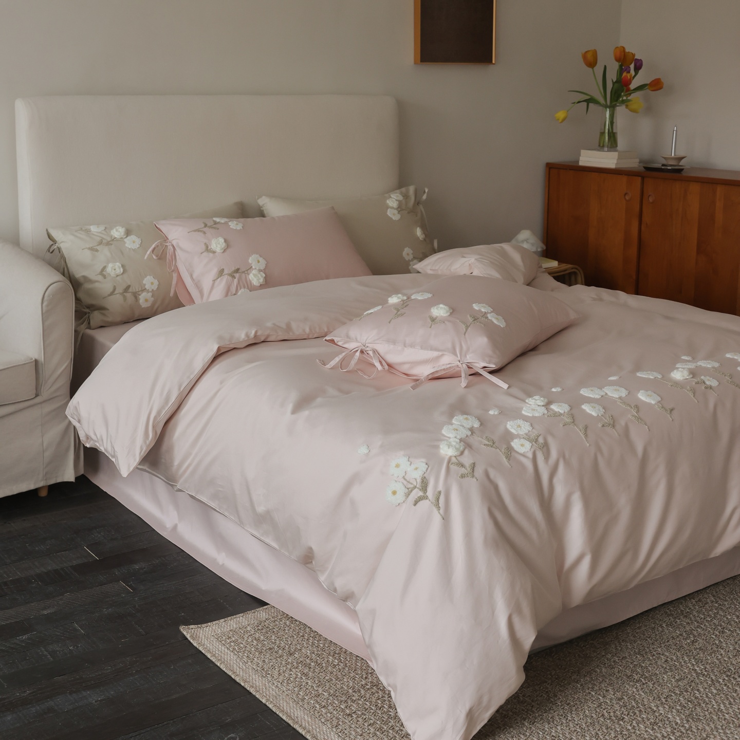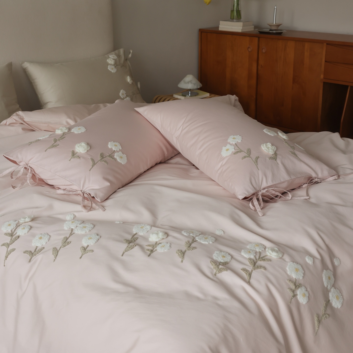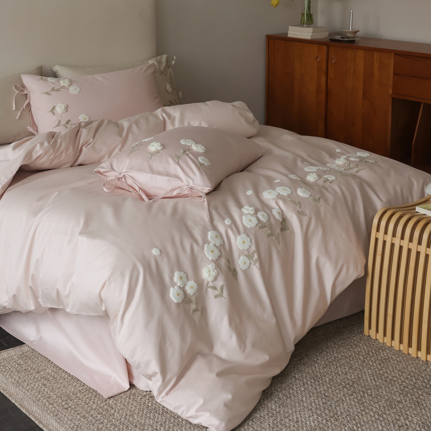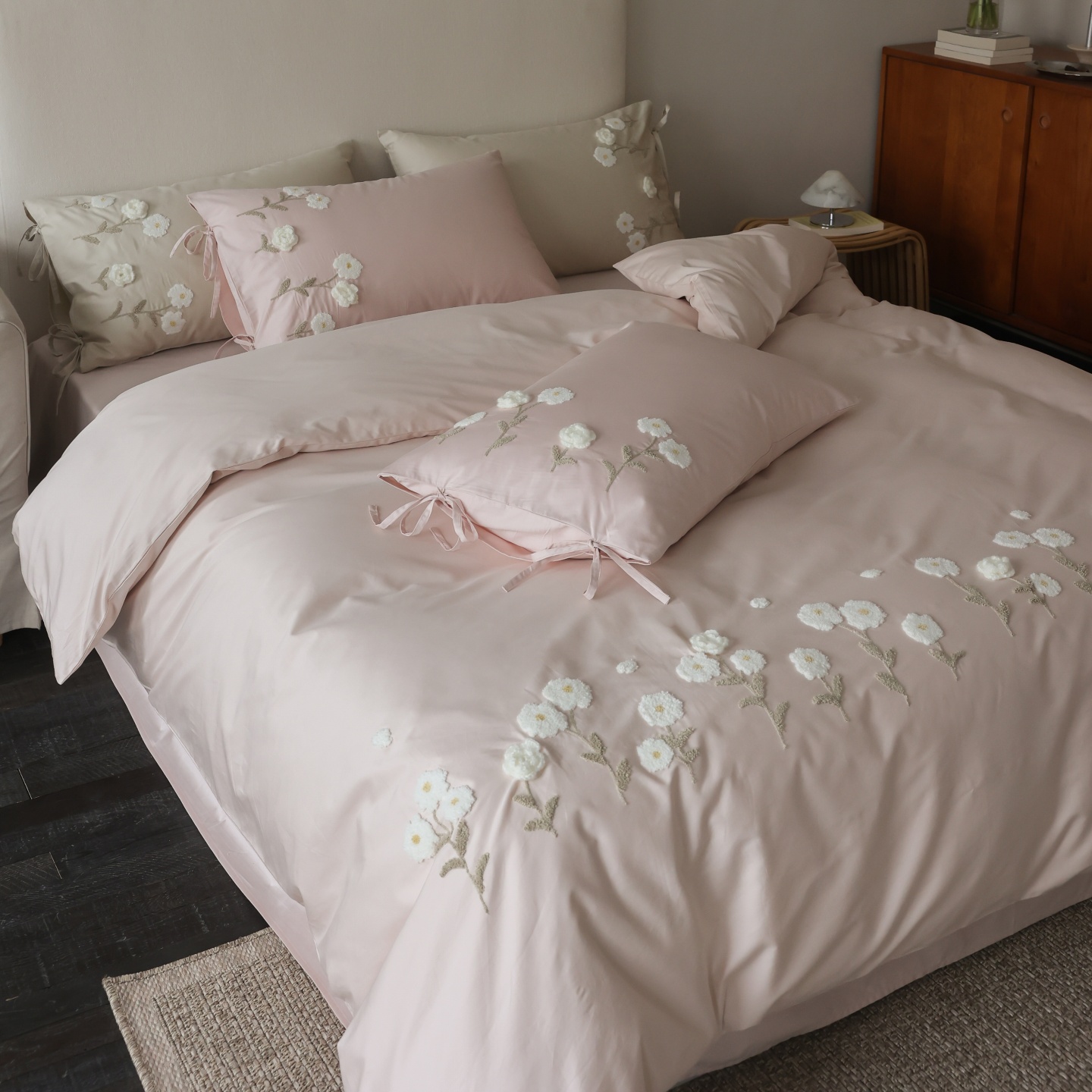 (总)初拾 2025新款全棉刺绣四件套—圣黛(棉),棉圣黛-果绿,棉圣黛-少女粉