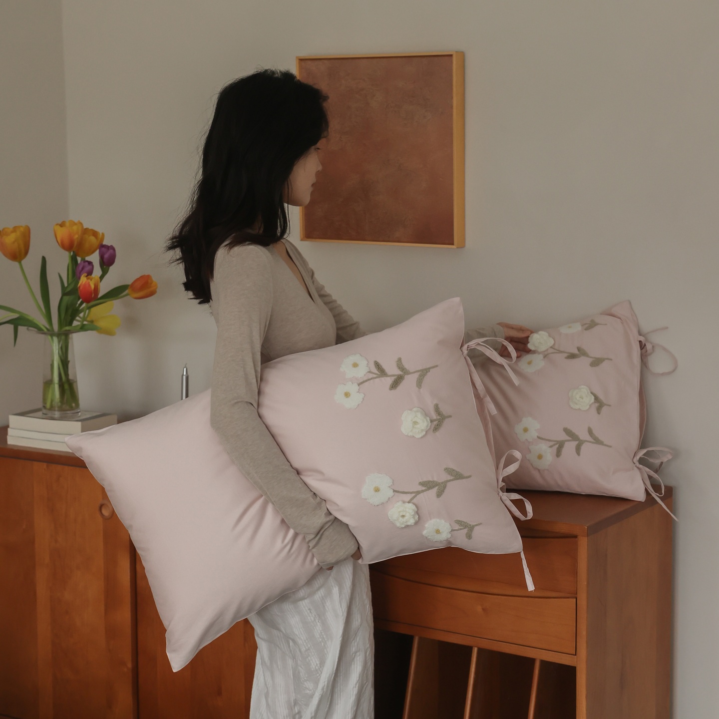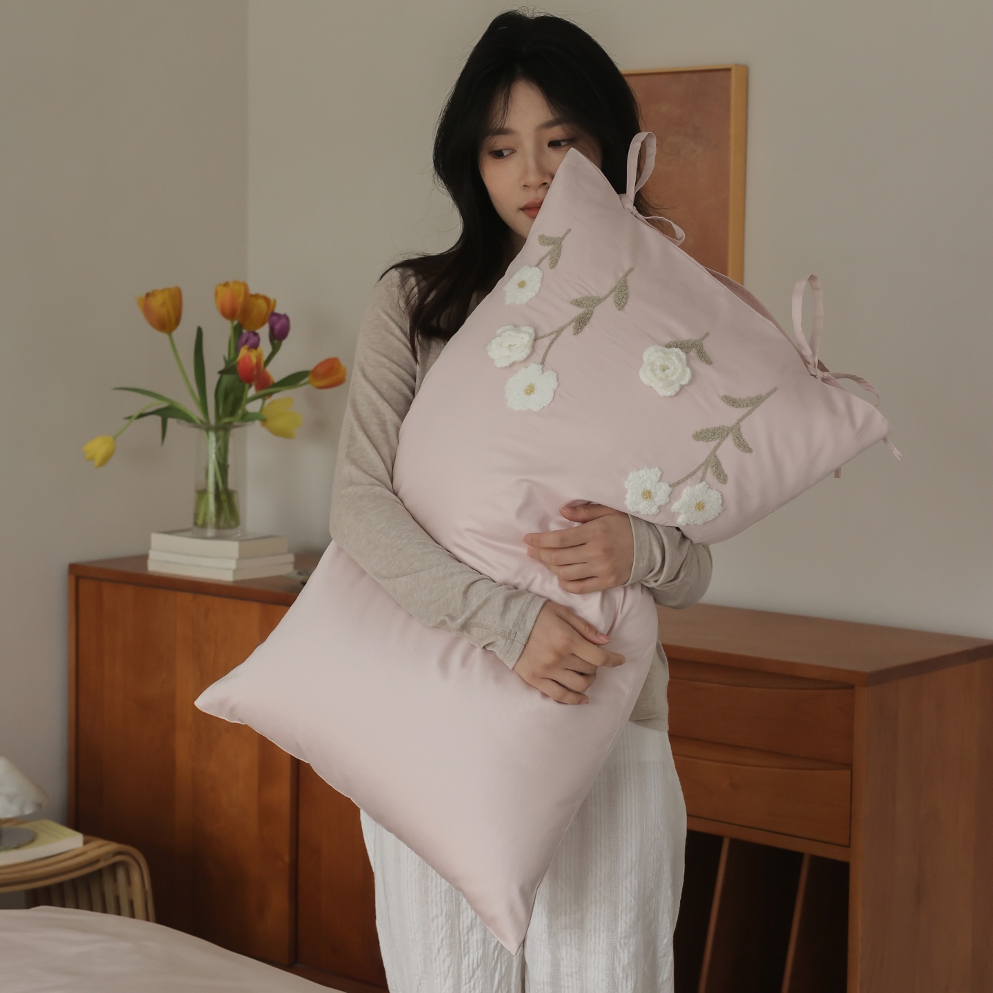 (总)初拾 2026春夏新款贡缎全棉纯棉马海毛钩花“氛围感”毛巾绣—少女心事 控价: 日常券后不低于368元 会员减20,少女心事-奶油绿,少女心事-浅樱粉