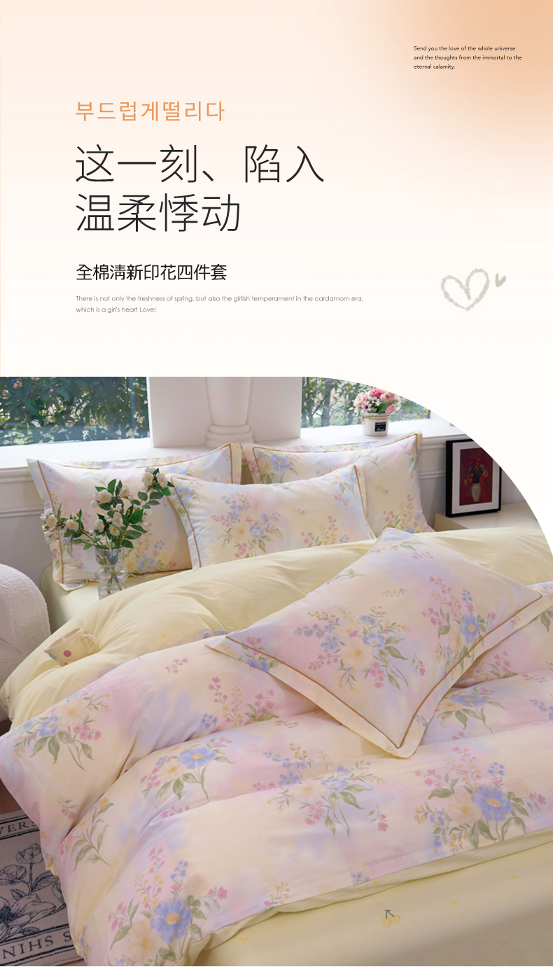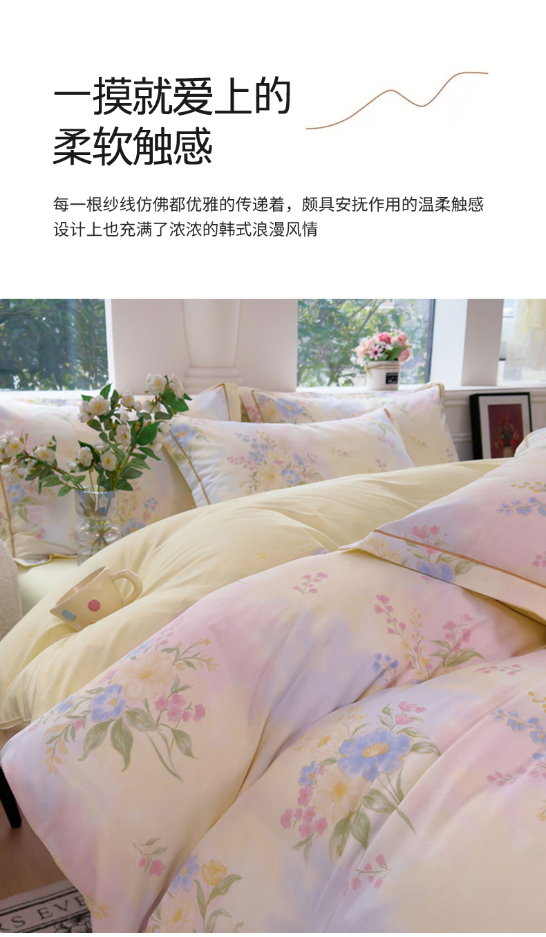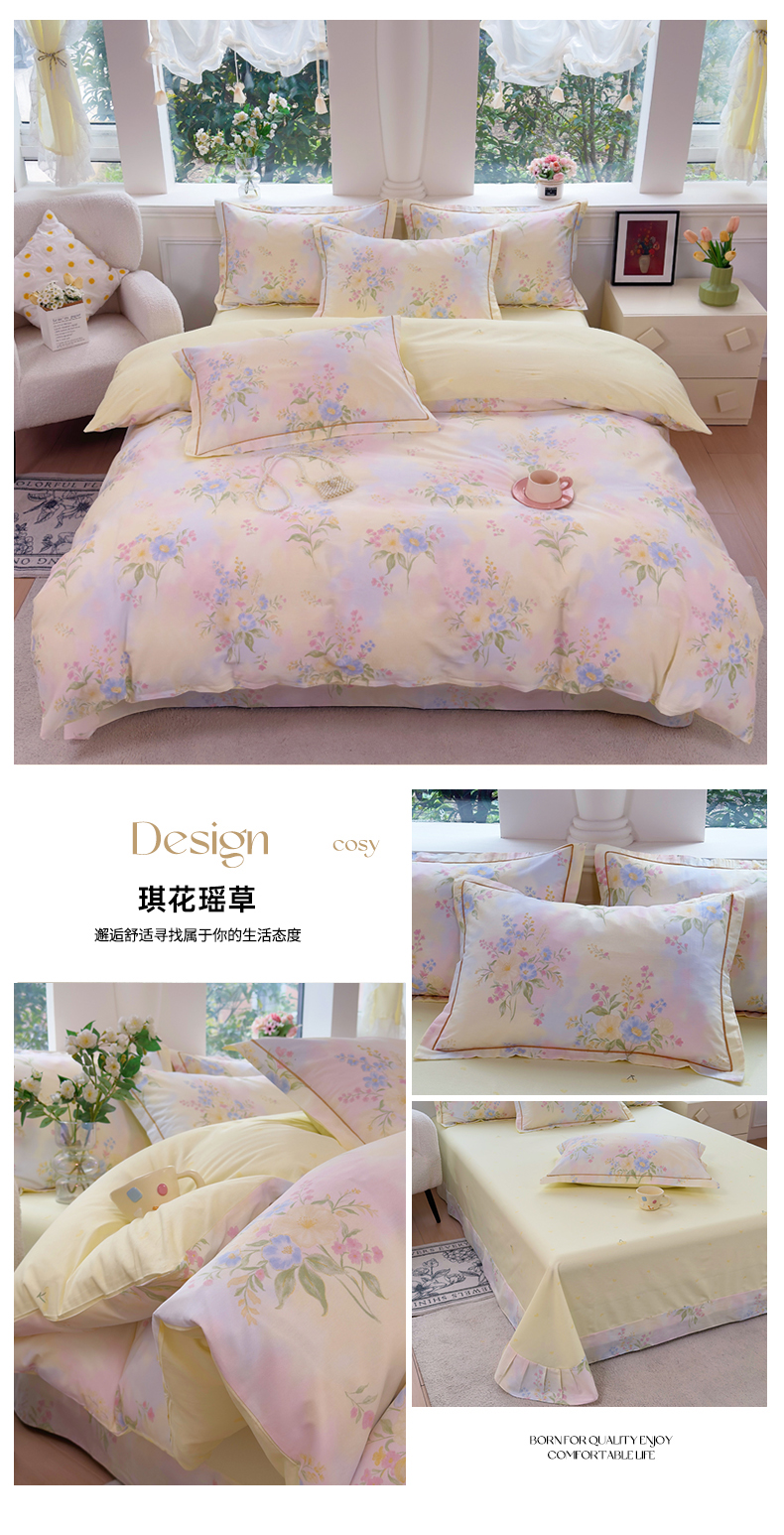 当前位置: 91家纺网 > 商品网购 > 床品套件 > 四件套 > 全棉普通四件套 > 铭博家纺 2026新款13070新款100%全棉纯棉印花工艺款吊边四件套 琪花瑶草
