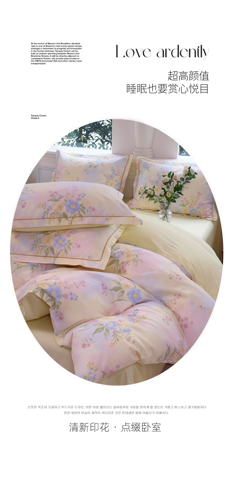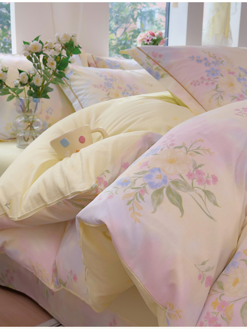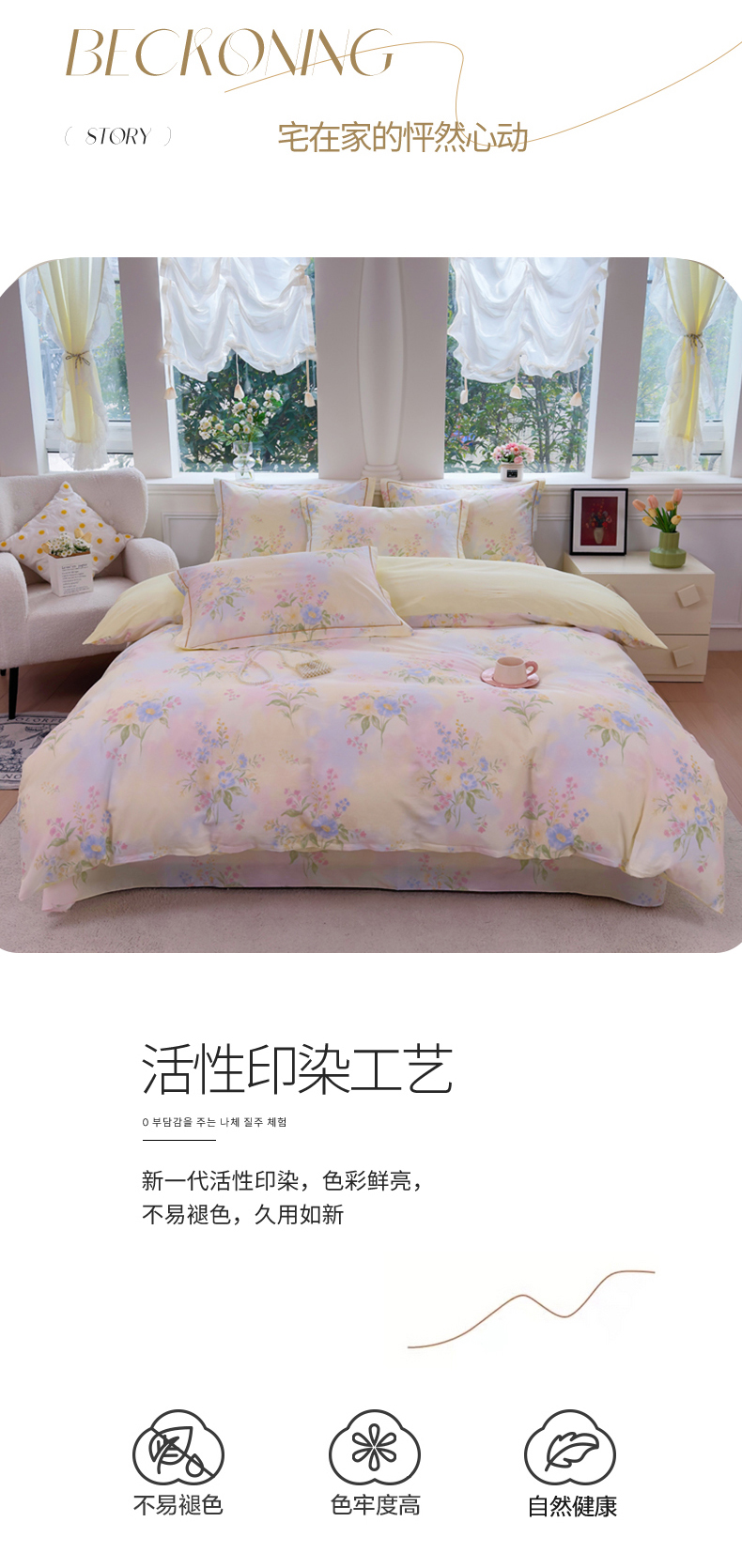 当前位置: 91家纺网 > 商品网购 > 床品套件 > 四件套 > 全棉普通四件套 > 铭博家纺 2026新款13070新款100%全棉纯棉印花工艺款吊边四件套 琪花瑶草