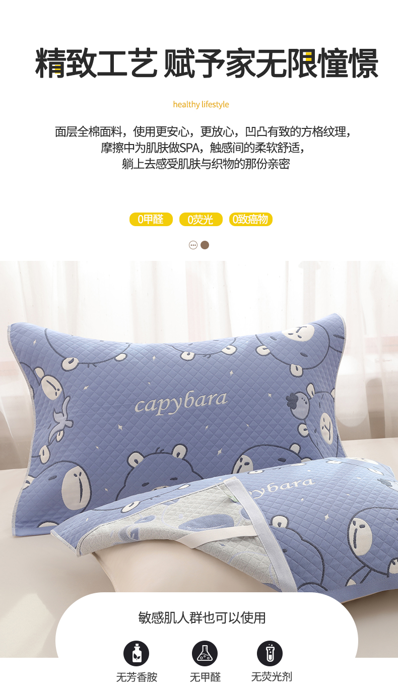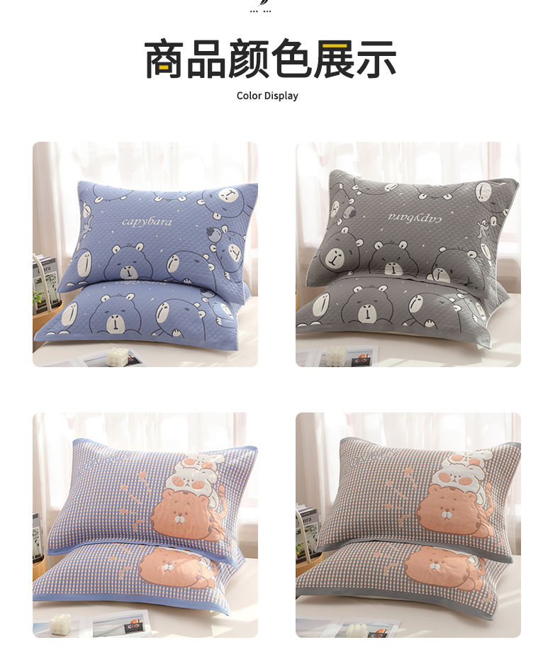 (总)娇兰毛巾 2026新款全棉抗菌纱布加双绑带枕巾,卡皮巴拉蓝,卡皮巴拉灰,蓝猫,灰猫