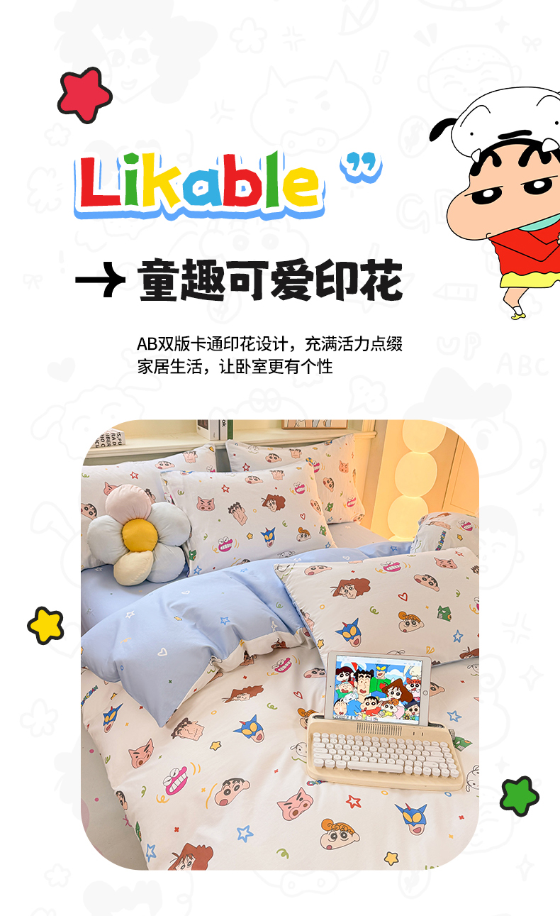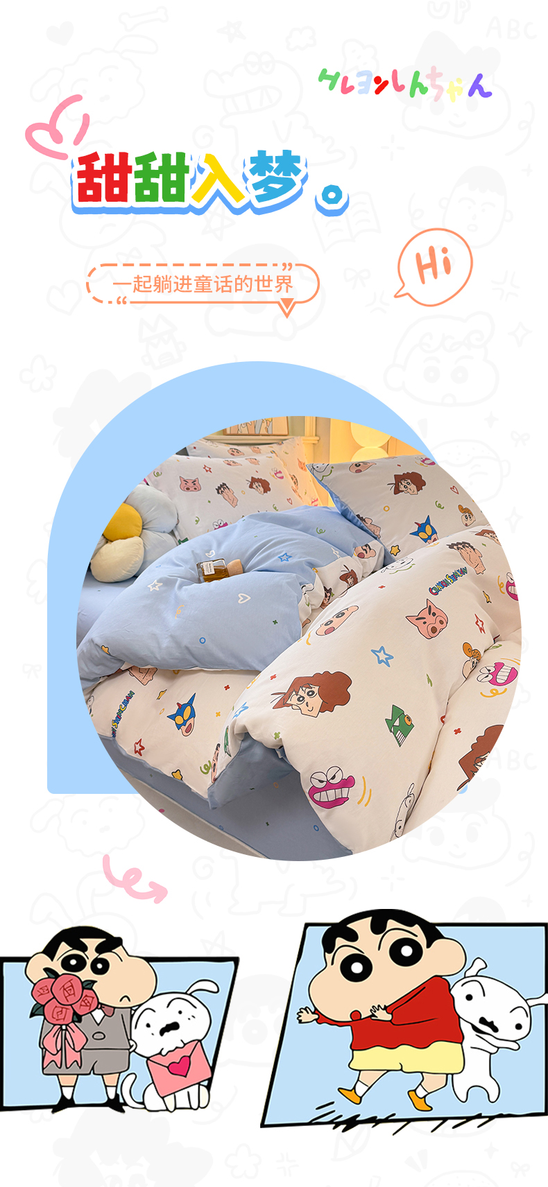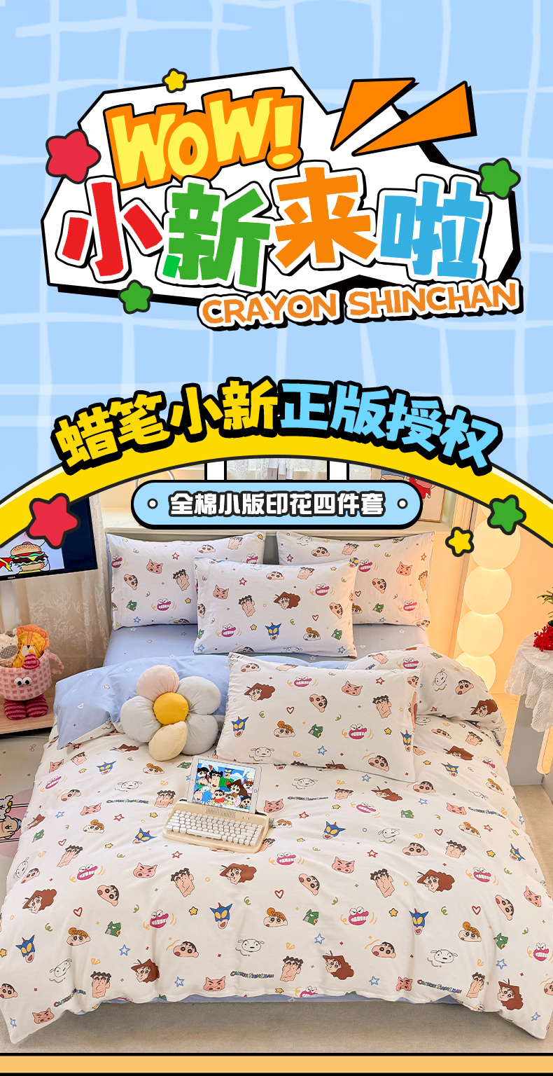 当前位置: 91家纺网 > 商品网购 > 床品套件 > 四件套 > 全棉普通四件套 > 博雅 2026新款蜡笔小新纯棉全棉四件套 小版-满版蜡笔小新