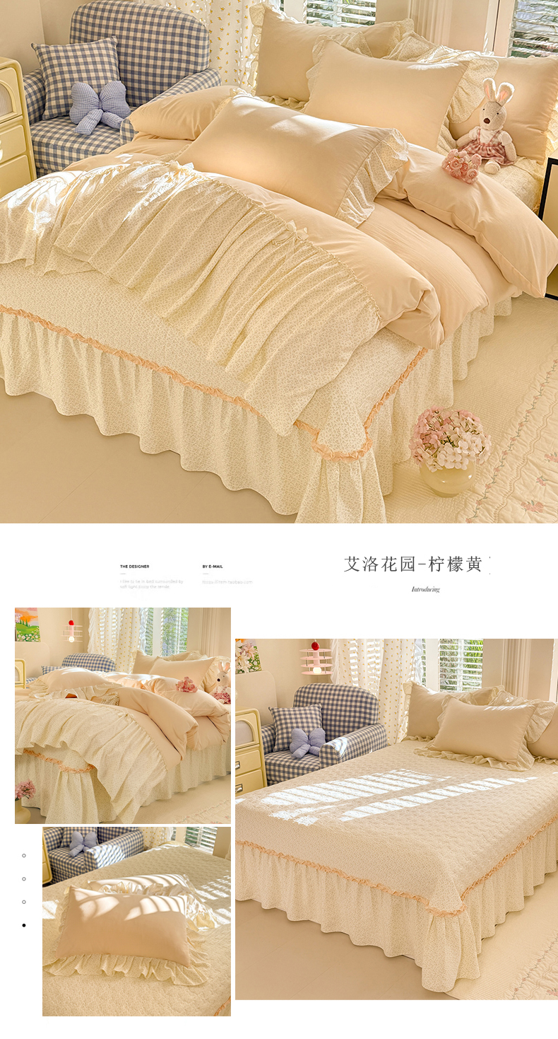 (总)漫布云家纺SUMINA 2026新款春夏超柔云朵棉床盖款四件套-艾洛花园系列,艾洛花园-童话粉 ,艾洛花园-玫瑰金 ,艾洛花园-柠檬黄, 艾洛花园-晴川兰
