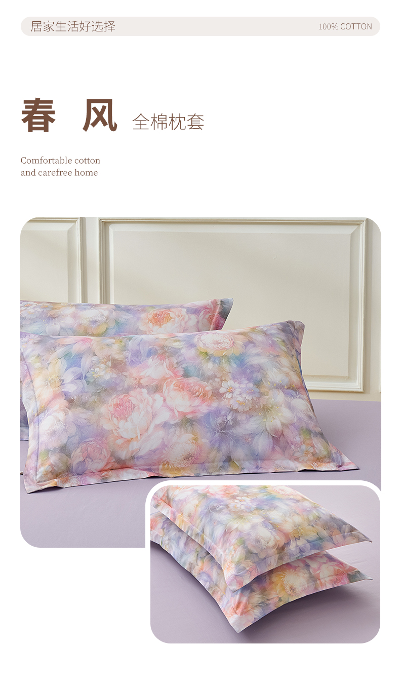 元元家居(元元被业) 2026新款全棉13372套件及单品【印花款】-单枕套 花漾紫