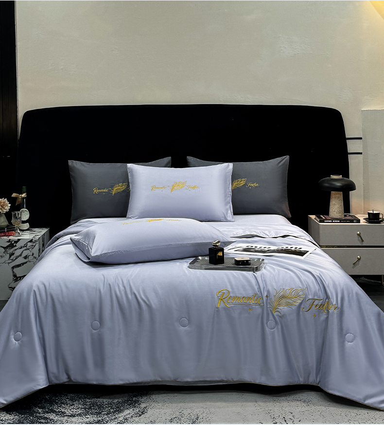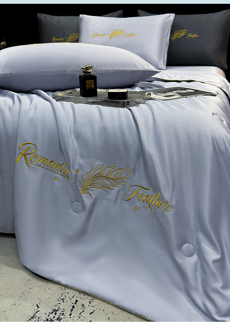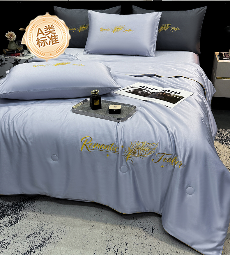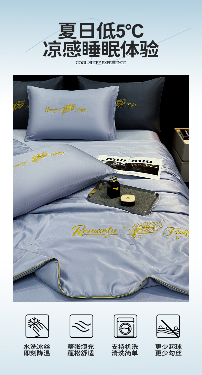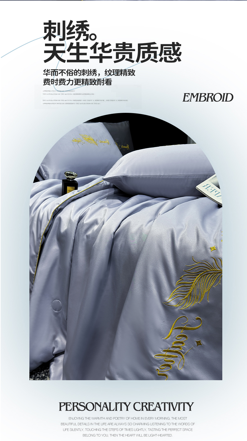 • 91家纺网 家纺一手货源 找家纺 (总)欢乐季 2026新款A类水洗冰丝羽毛刺绣夏被夏凉被空调被四件套,宾利蓝,高级灰,卡其,藕粉,浅灰,香芋紫