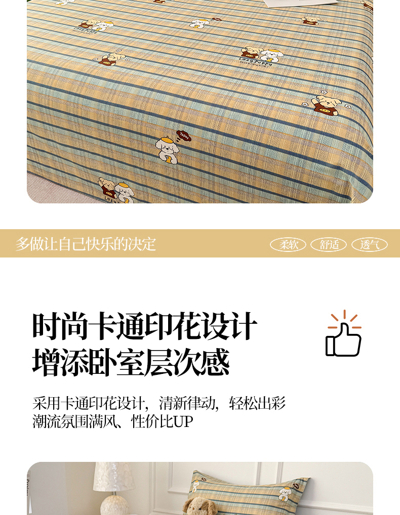 壹贝家纺 2026新款全棉喷气印花床单系列 俏皮狗