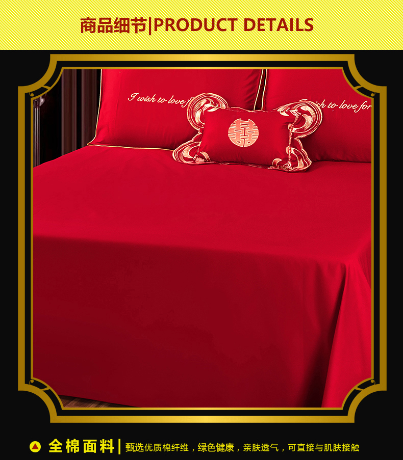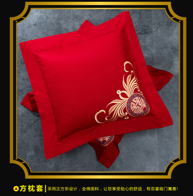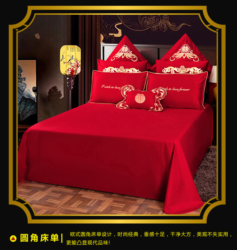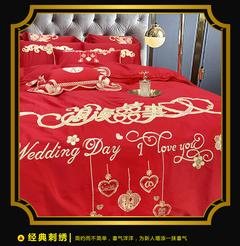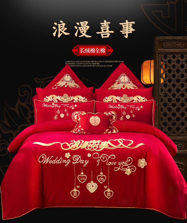 当前位置: 91家纺网 > 商品网购 > 床品套件 > 四件套 > 婚庆四件套 > 慕她家纺 2026年全棉纯棉婚庆四件套大红色刺绣结床上用品(床盖款加40) 浪漫喜事