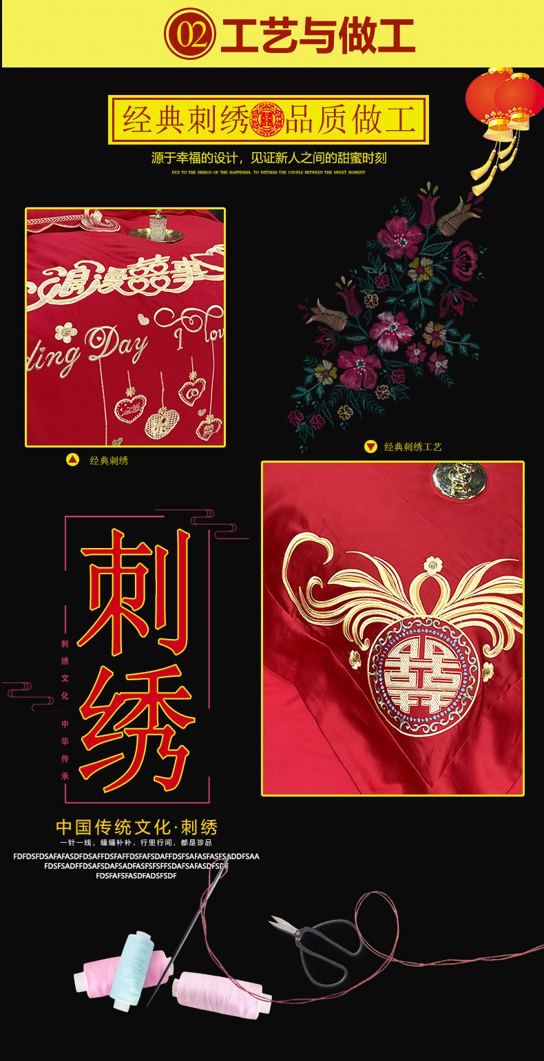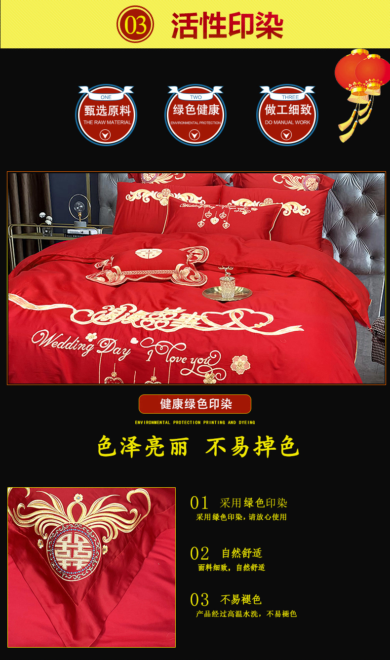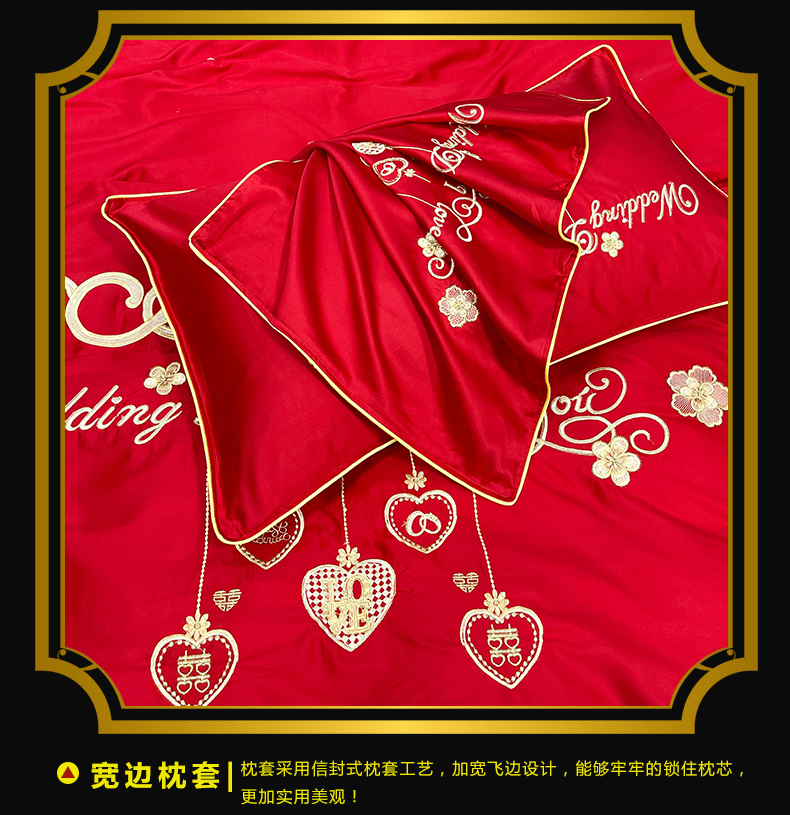 当前位置: 91家纺网 > 商品网购 > 床品套件 > 四件套 > 婚庆四件套 > 慕她家纺 2026年全棉纯棉婚庆四件套大红色刺绣结床上用品(床盖款加40) 浪漫喜事