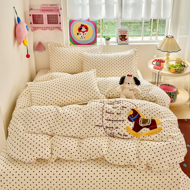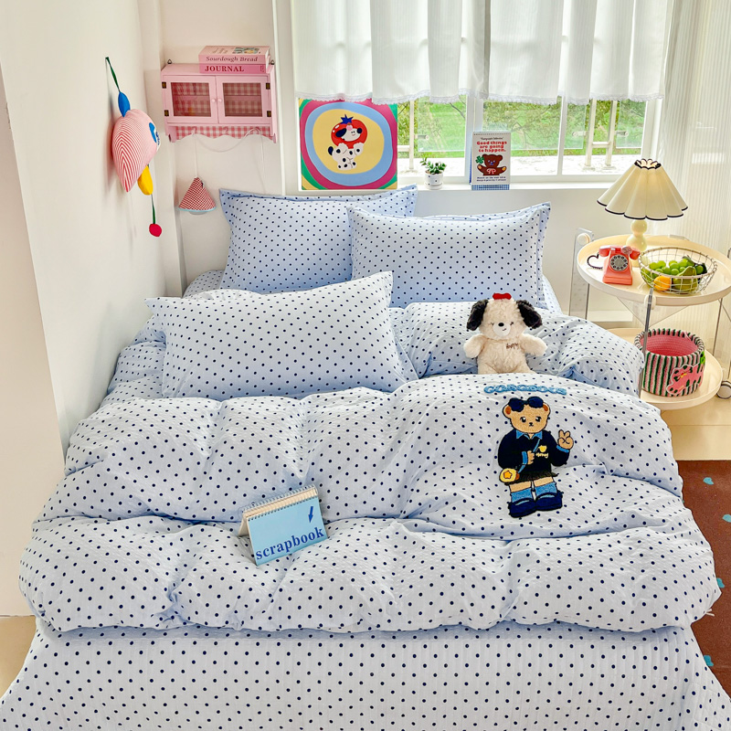 (总)梦可莱家居 2026春夏新款全棉纯棉针织棉印花小清新可爱Ins风四件套,波点蓝花,抱抱熊,比熊,波点红花,丁香花,格子蝴蝶,格子樱桃,海棠花,红玫瑰,咖格,腊梅,蓝花藤,露丝,绿意,秋天咖,杉叶,太阳花,条纹狗,兔小姐,知画,紫薇